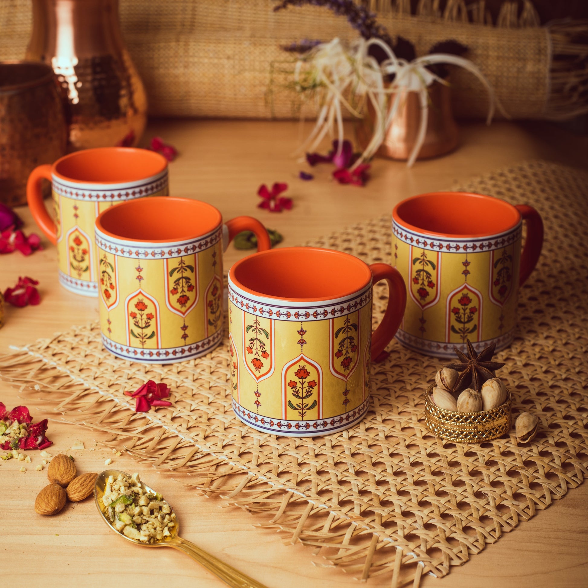 The Marigold Melody Tea cups showcasing a vibrant floral pattern in the bright shades of yellow and orange are an absolute must-have and a perfect addition to your drinkware collection. These cups ooze with elegance and also make the perfect gift for your loved ones!