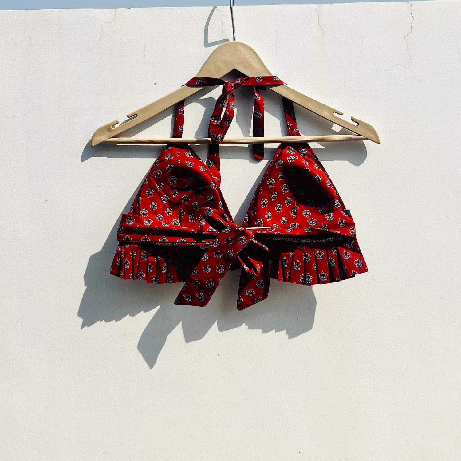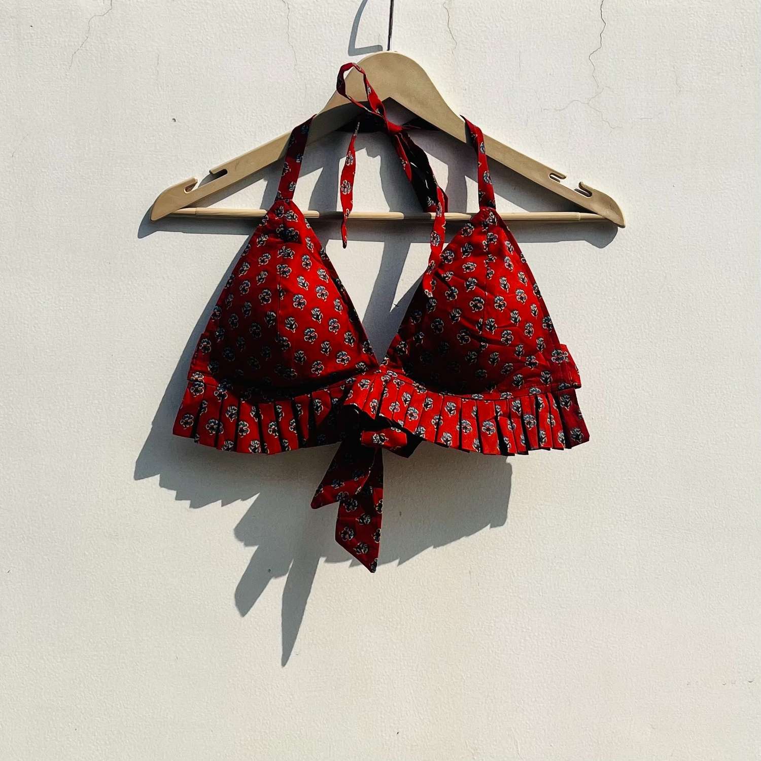 The Maroon Butti Bralette is a beautifully crafted piece that combines rich color with traditional elegance. Made from soft, breathable fabric, it features delicate butti prints in a deep maroon hue, adding a touch of cultural charm. The comfortable, flattering fit ensures all-day wear, making it perfect for casual or layered looks.