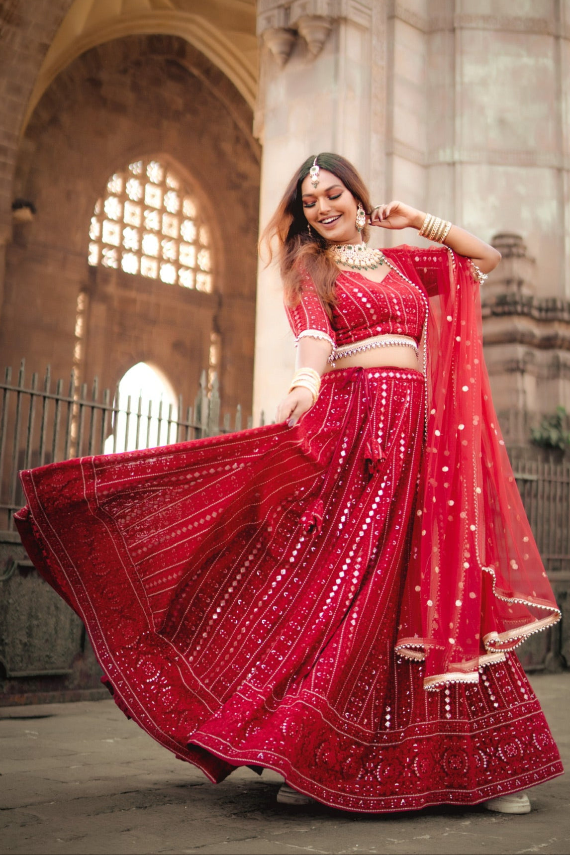 Maroon Chikankari and Sequin Lehenga