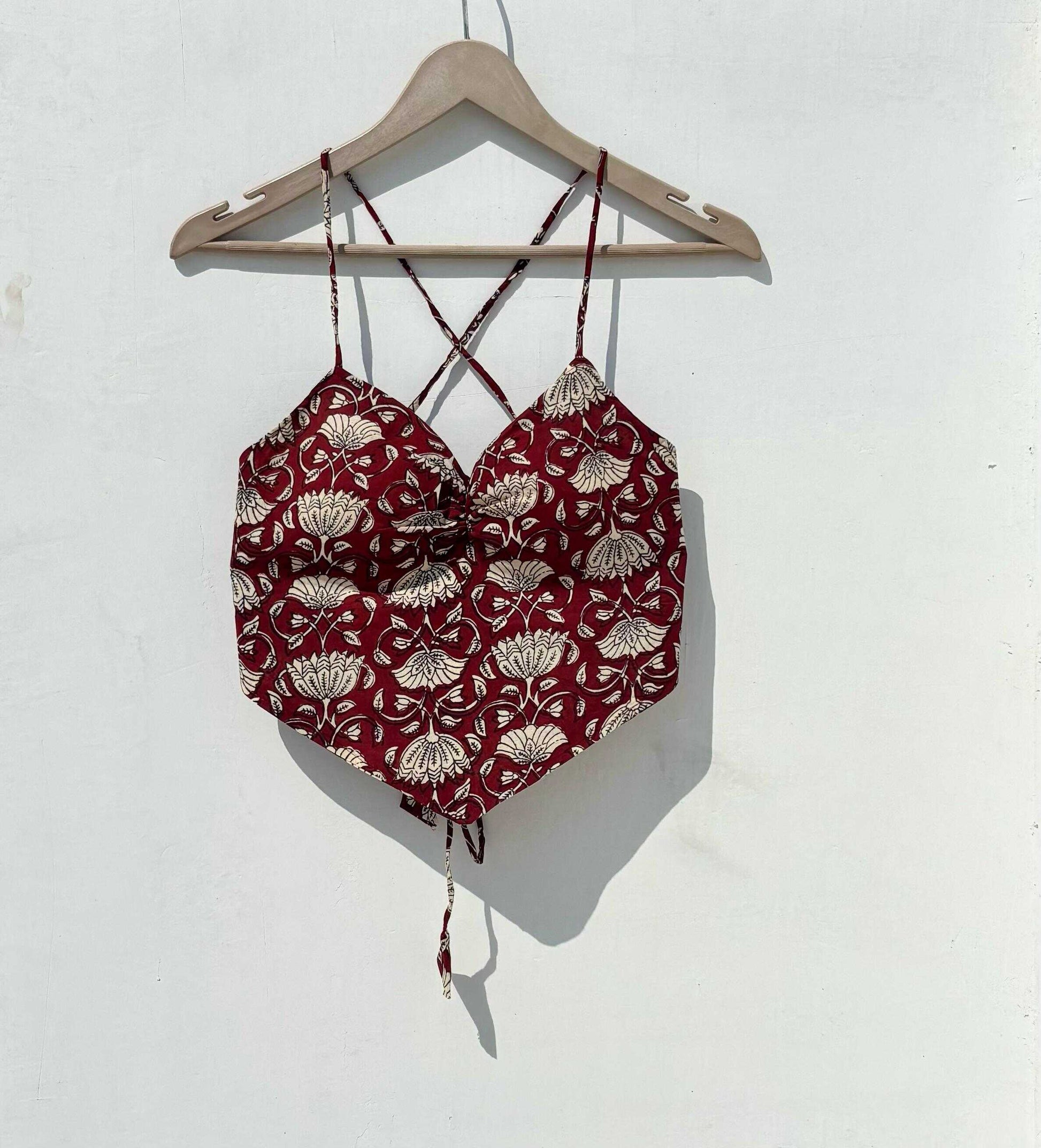The Maroon Lotus Criss Cross Cotton Top combines a rich maroon hue with a stunning lotus print. Featuring a chic criss-cross detail, this soft cotton top offers both comfort and style, perfect for adding a touch of elegance to your everyday look.