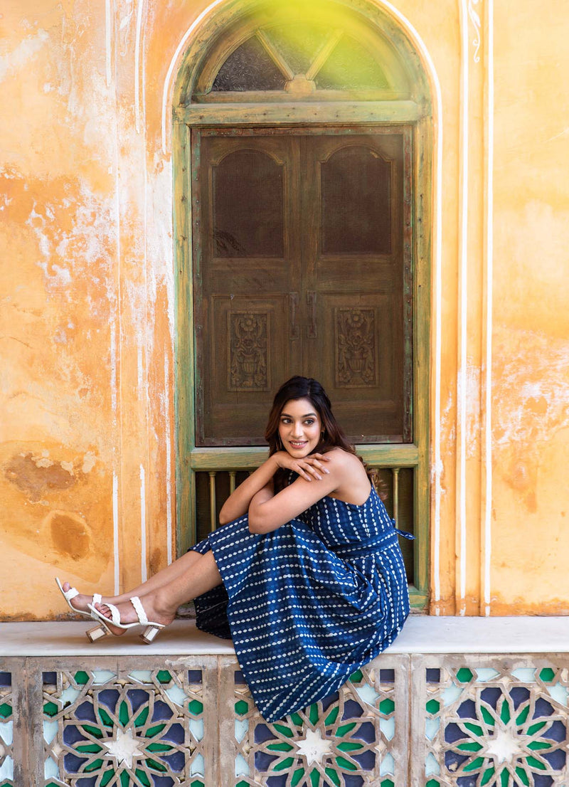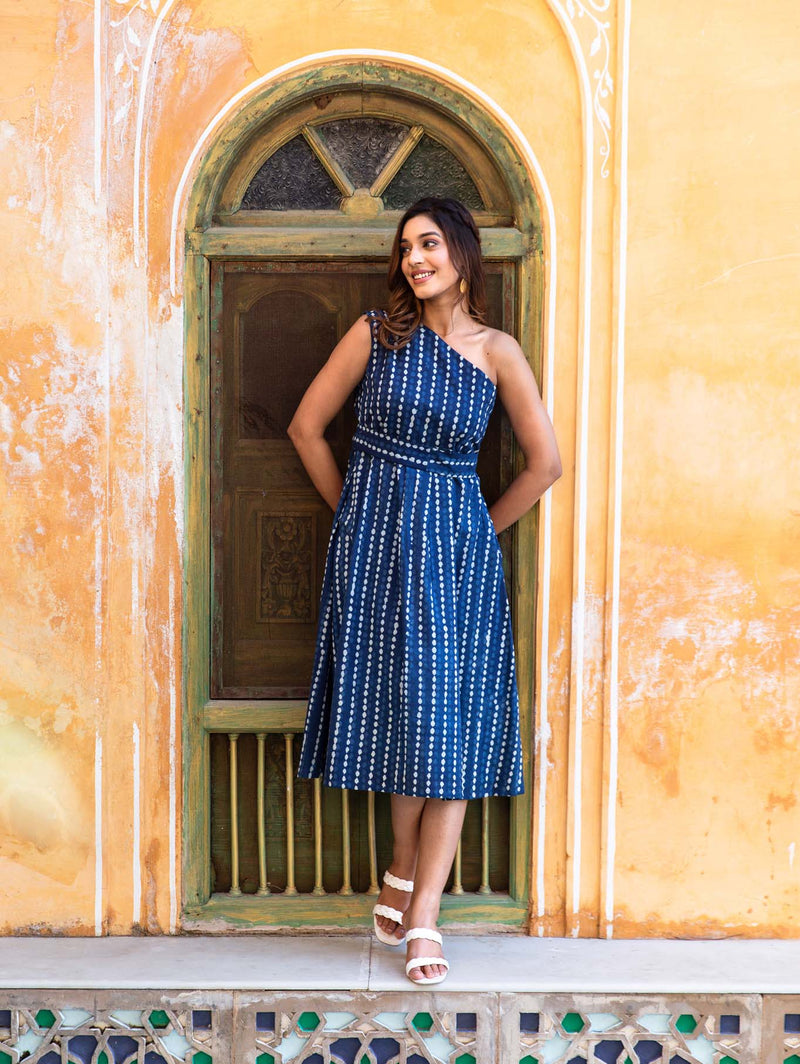 Calling out all the Indigo lovers and the ones who want to try a classic Indigo dress on! This one shoulder dress comes with a belt.