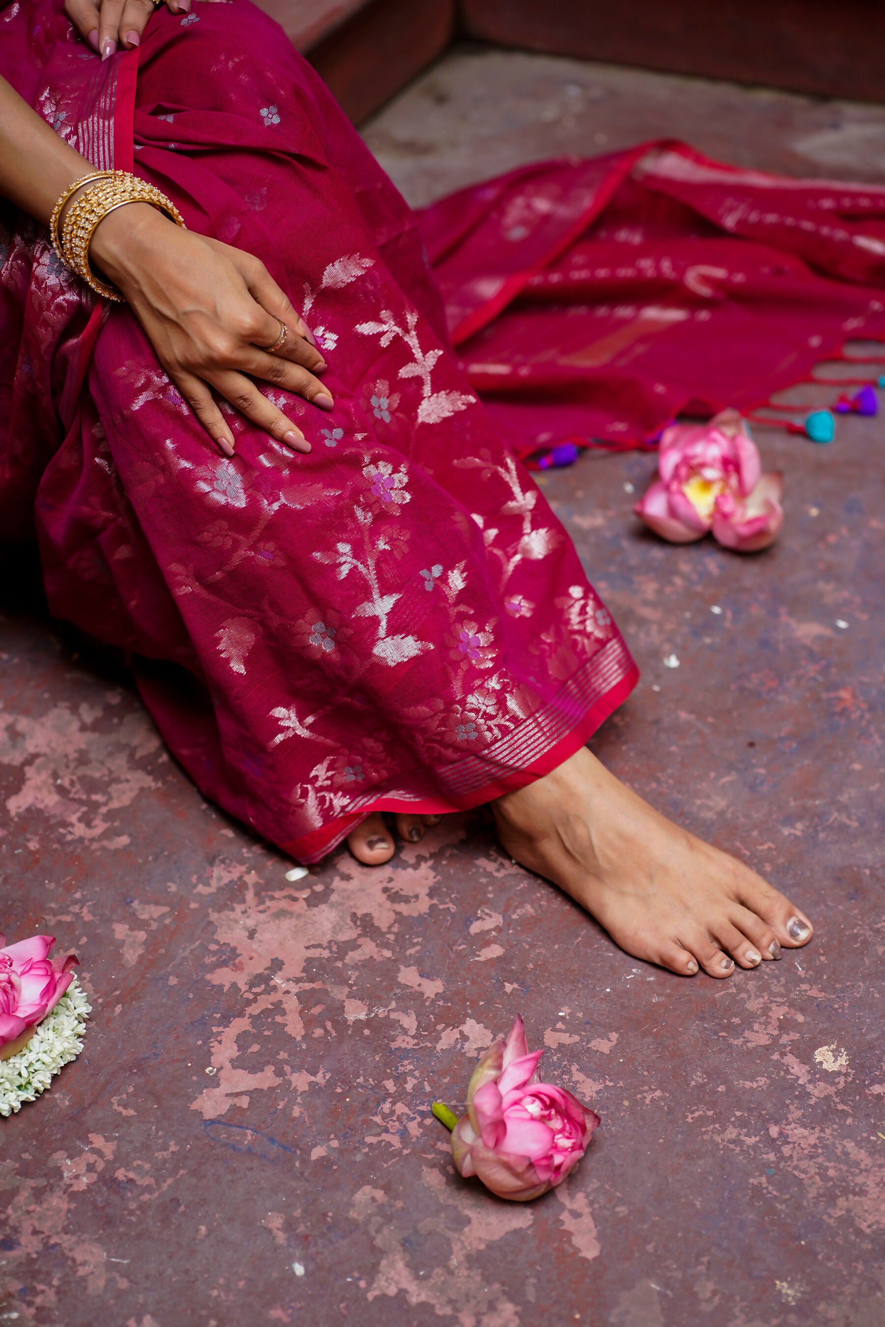 Meena Kumari Handwoven Cotton Pink Saree