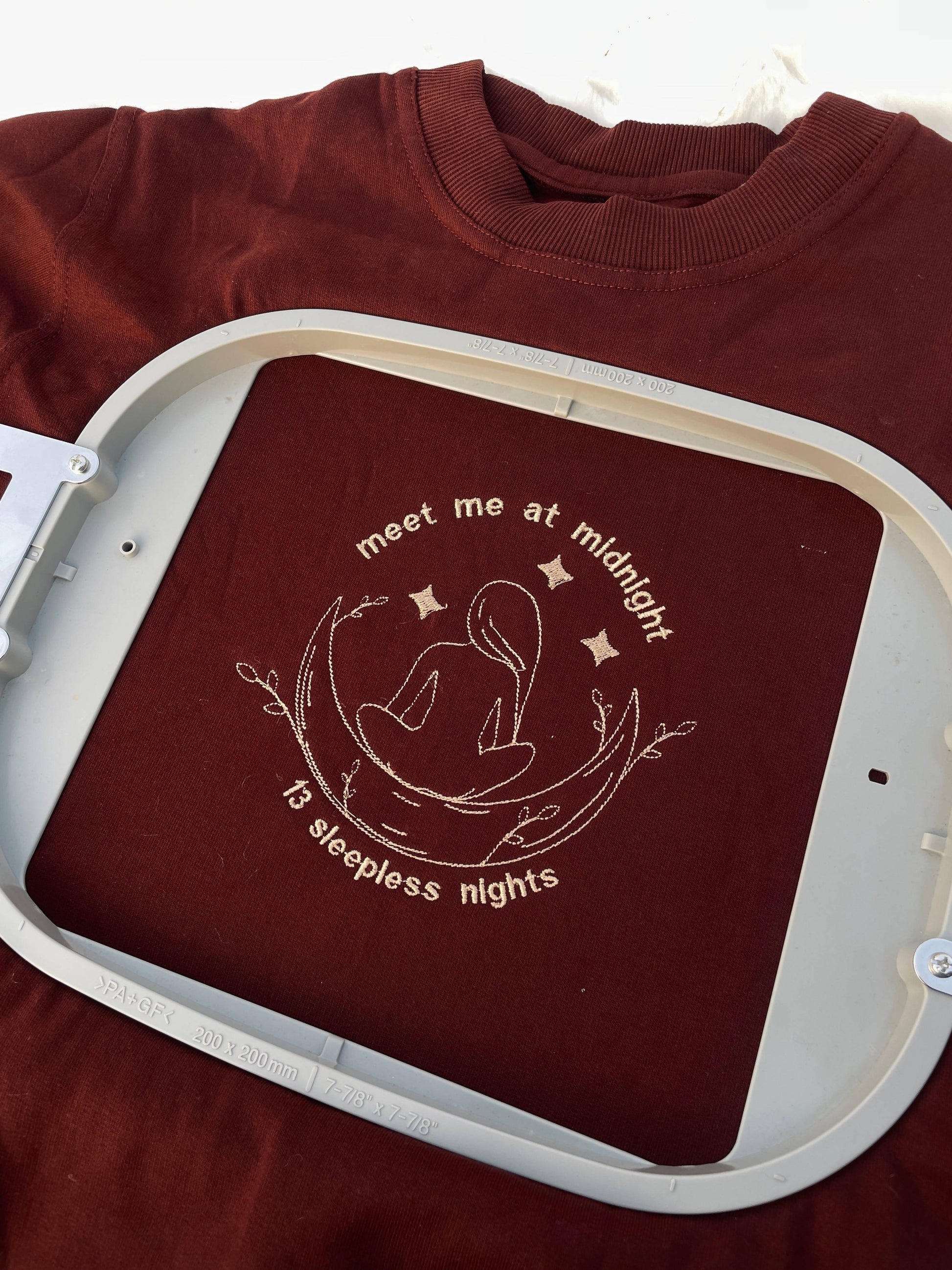 Meet Me At Midnight Embroidered Dark Brown Sweatshirt