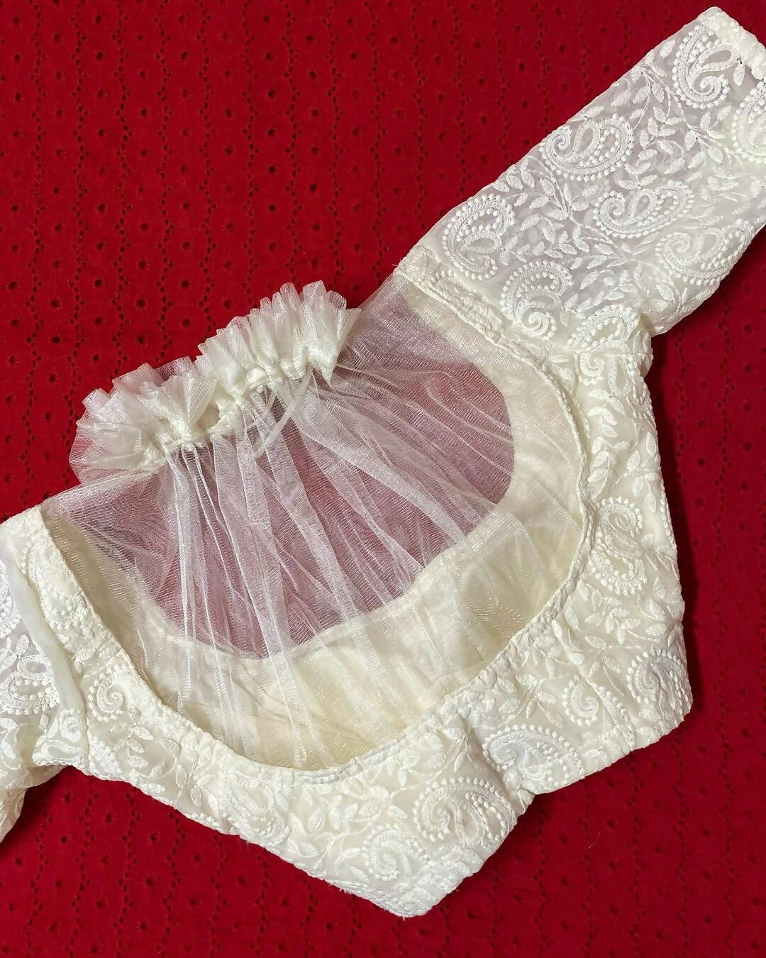 Elegantly designed to complement any saree, this blouse is a timeless fusion of tradition and style.