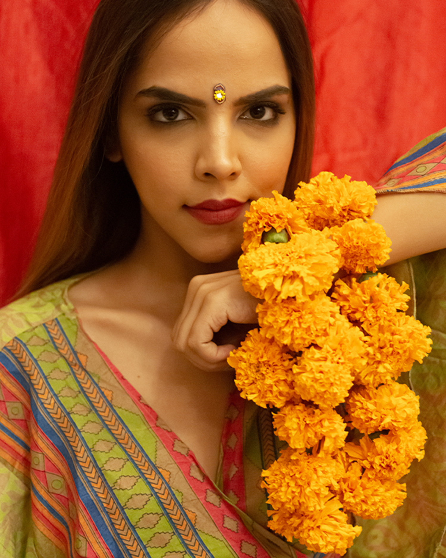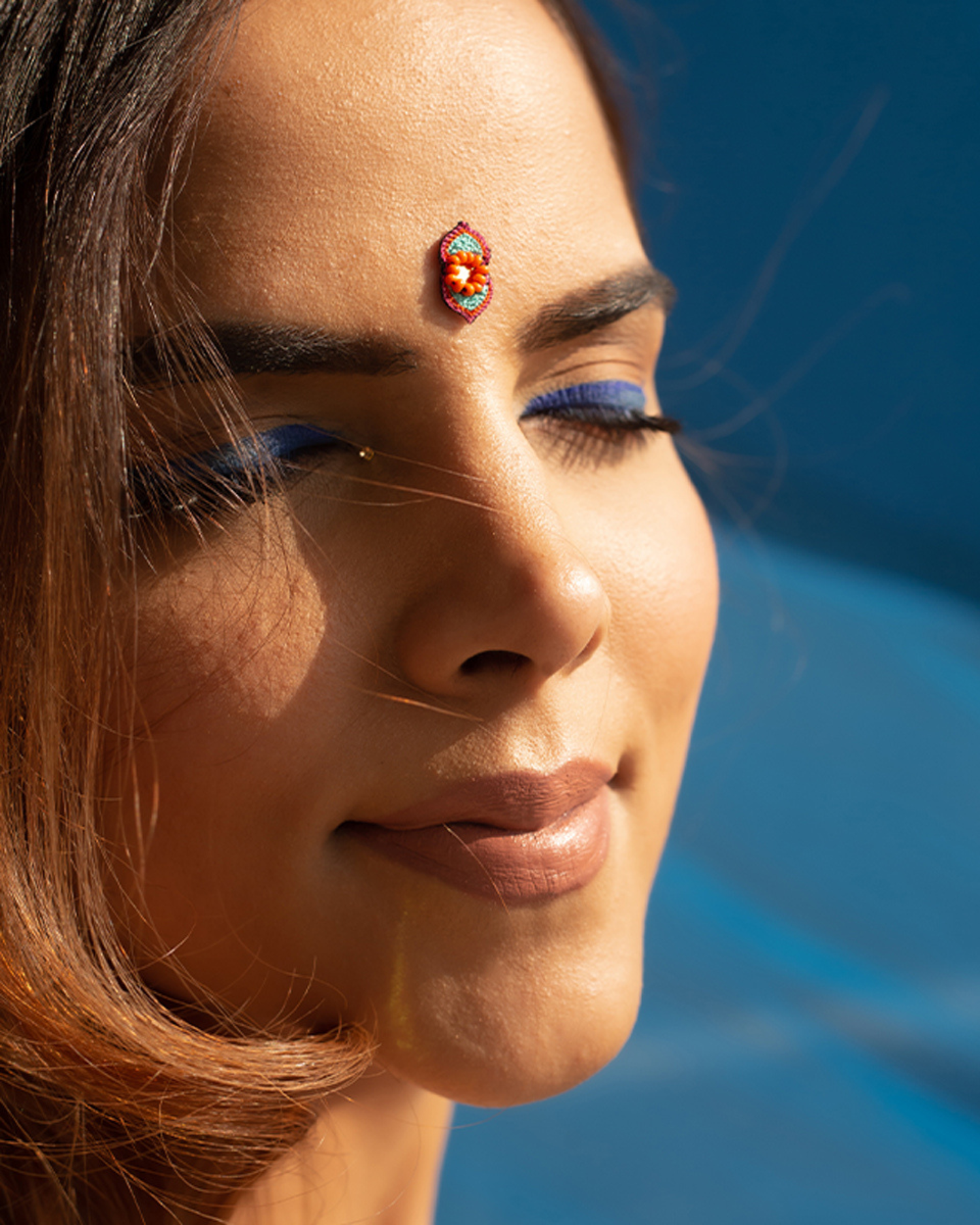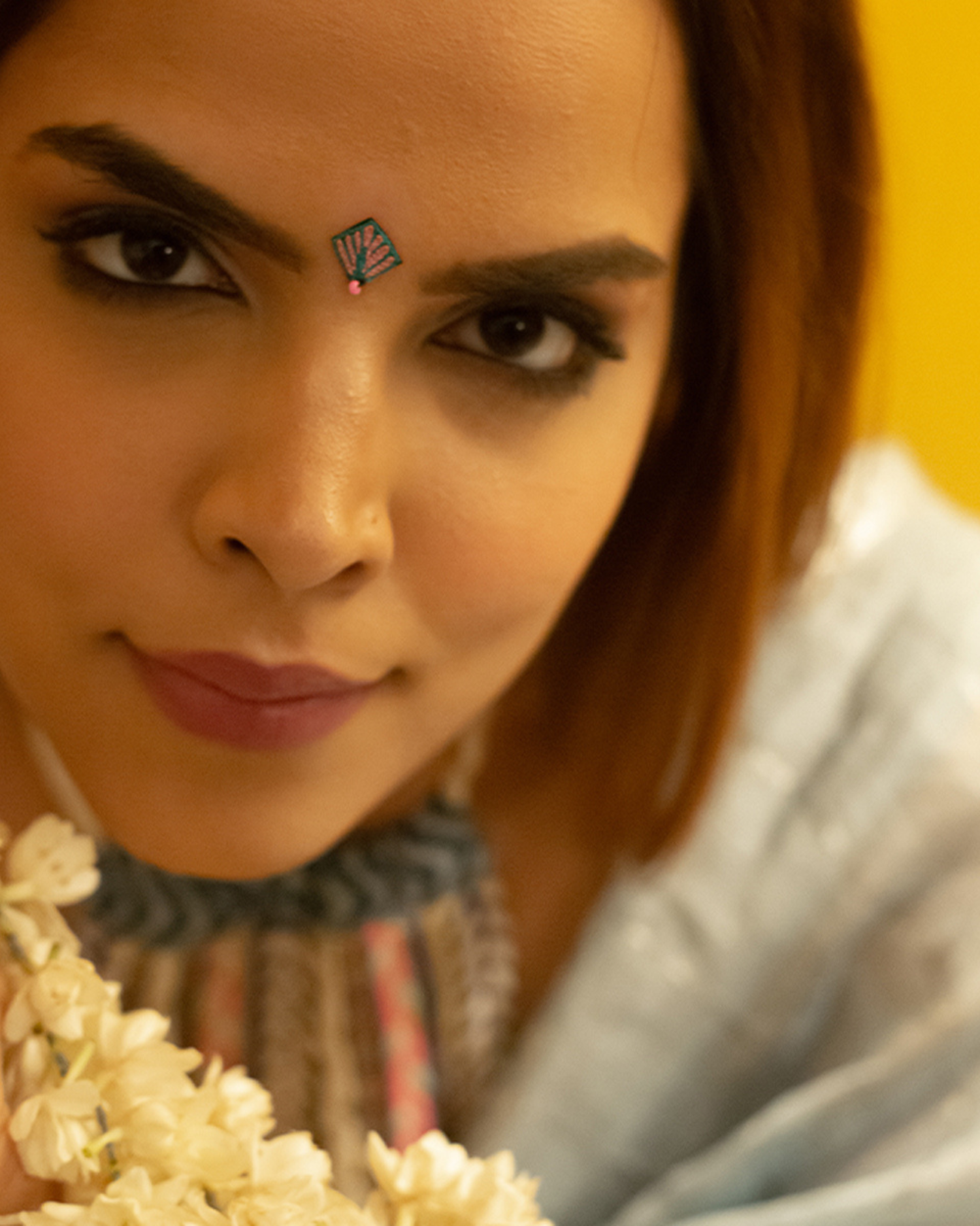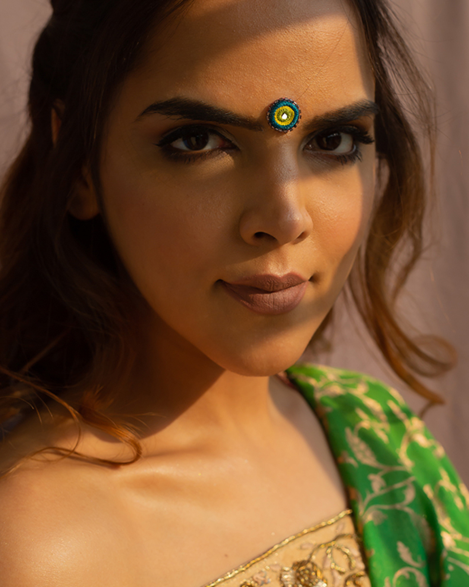 Materials: Organically dyed beads and cutdana, Mirrors and Metal Elements, Anchor and Resham Threads on Fabric