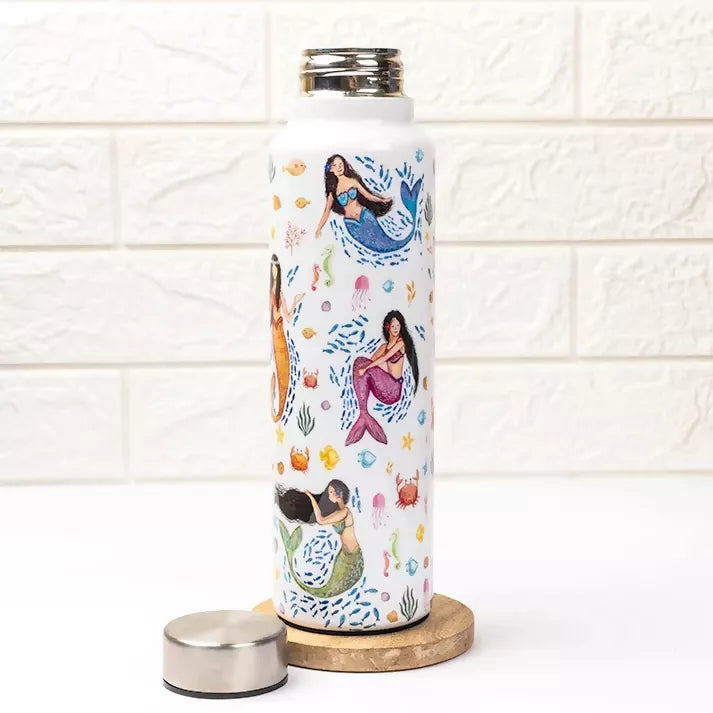 The Mermaid's Dream Steel bottle showcases gorgeous illustrations of mermaids on white background. This bottle is not just a beautiful addition to your drinkware collection but also durable as it is made with high quality 304 grade steel. No wonder this is the most preferred choice when it comes to beautiful yet thoughtful gifting.