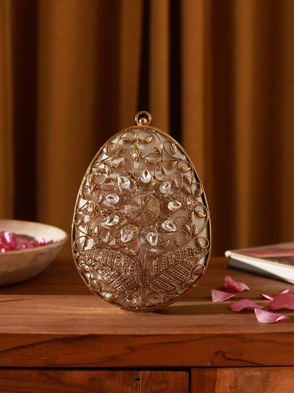 The Mia Intricate Brass Clutch is a masterpiece of craftsmanship, featuring detailed, ornate brass work that adds a touch of vintage charm and sophistication. Its sleek design and exquisite texture make it the perfect accessory for elegant evening events or special occasions. Timeless and refined, the Mia clutch brings a unique blend of artistry and style to any ensemble.