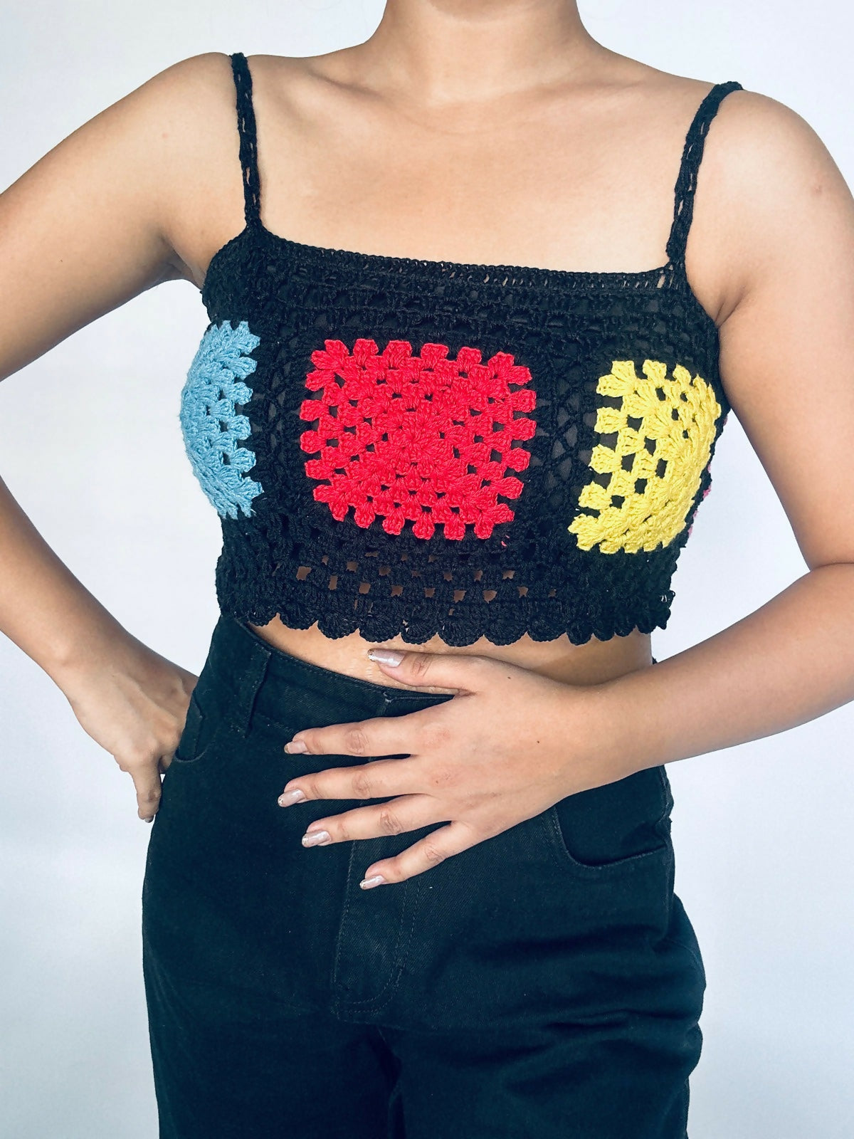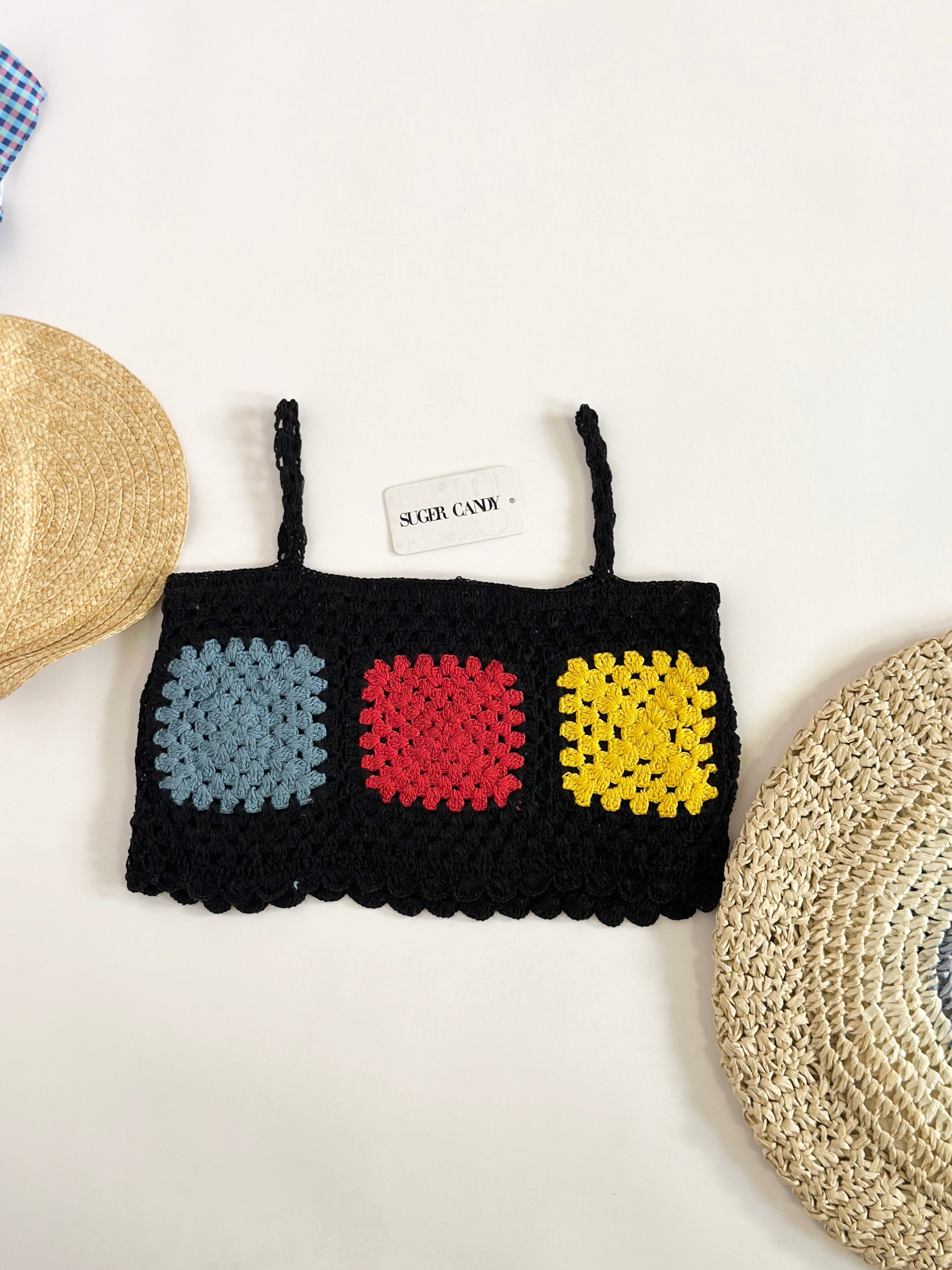 Add this stylish black square crochet top to your summer collection! Perfect for any occasion, the delicate crochet design adds a touch of elegance to your outfit. Look effortlessly chic and stay cool this season.