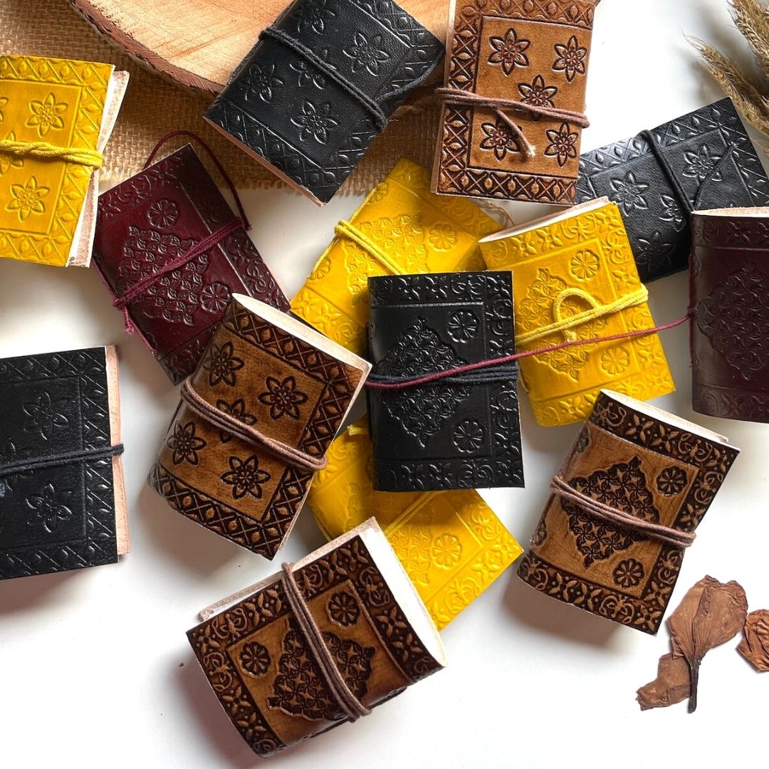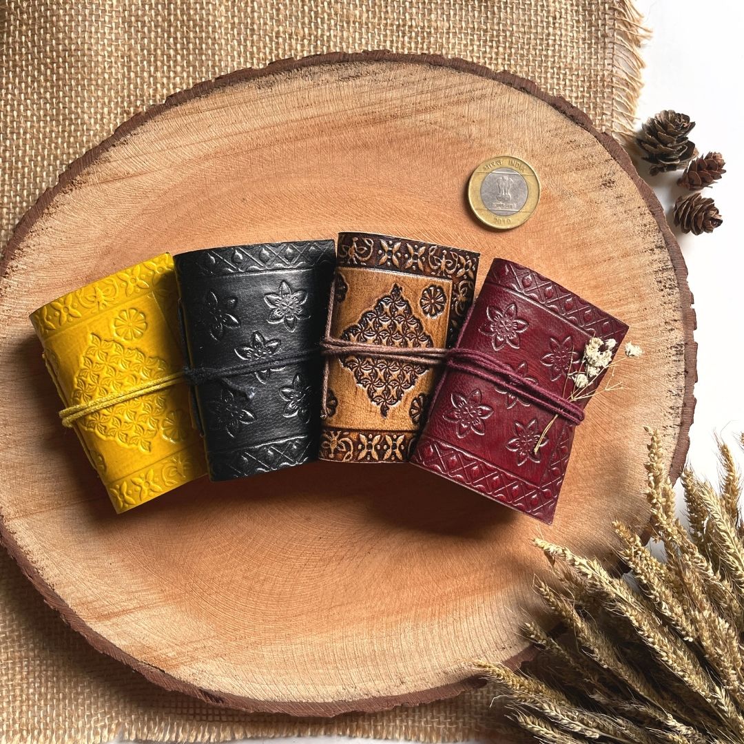 Mini journals are absolutely cute but also challenging to work with which is the most fun part! You can journal, paint and doodle. The cover is in leather with beautiful embossed designs. It is a set of 4 each in different colour.
