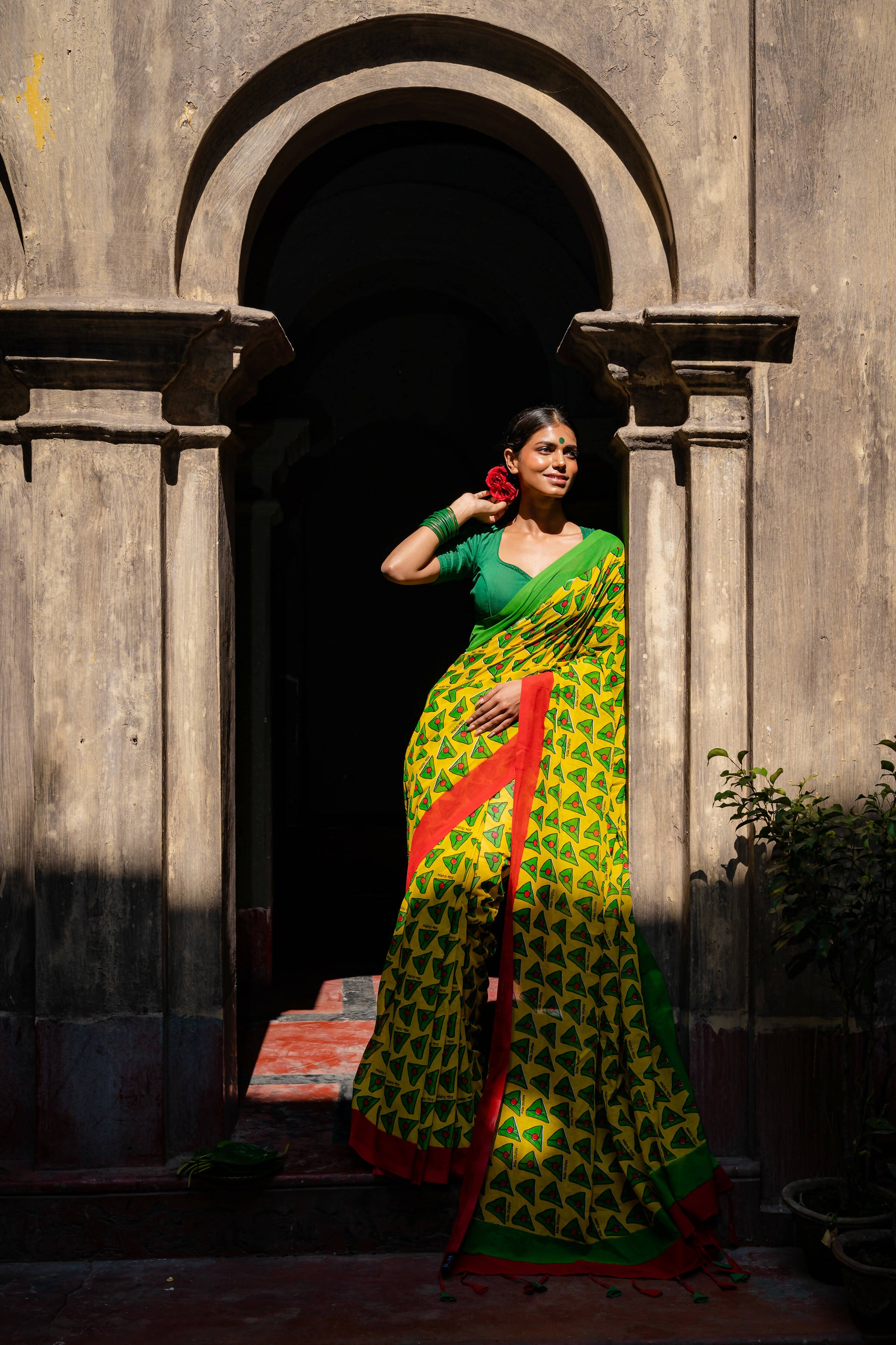 Step into the world of vibrant style with our hand-blocked funky prints on sarees. Each piece is a unique blend of traditional craftsmanship and contemporary design, adding a playful twist to the timeless elegance of the saree, perfect for those who dare to stand out with flair.