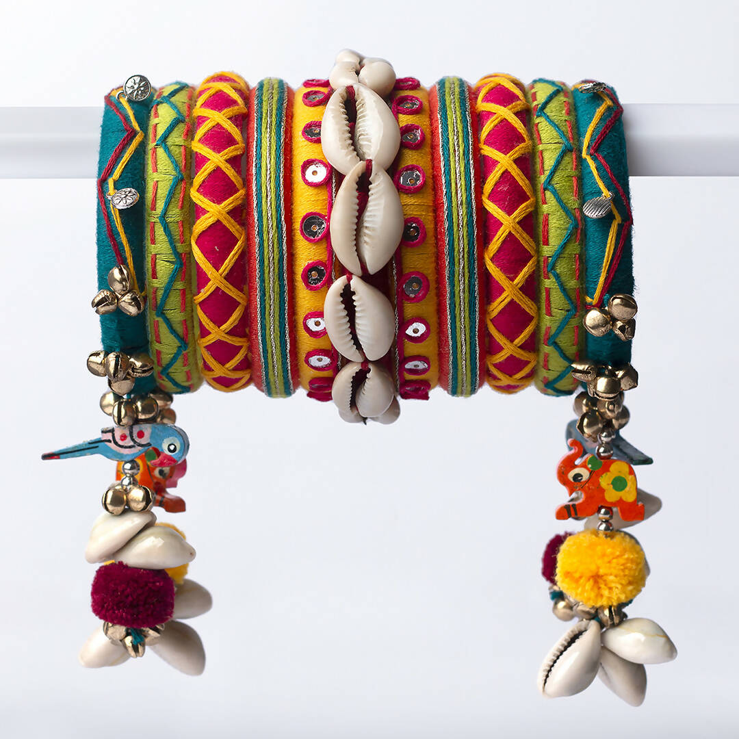 Mohini is specially designed for Navratri outfits with colourful threads, kantha work, threadwork and also shells are added with parrot and elephant charms and ghugharu to give it a boho look. Get this beauty to pair for your boho styling look.