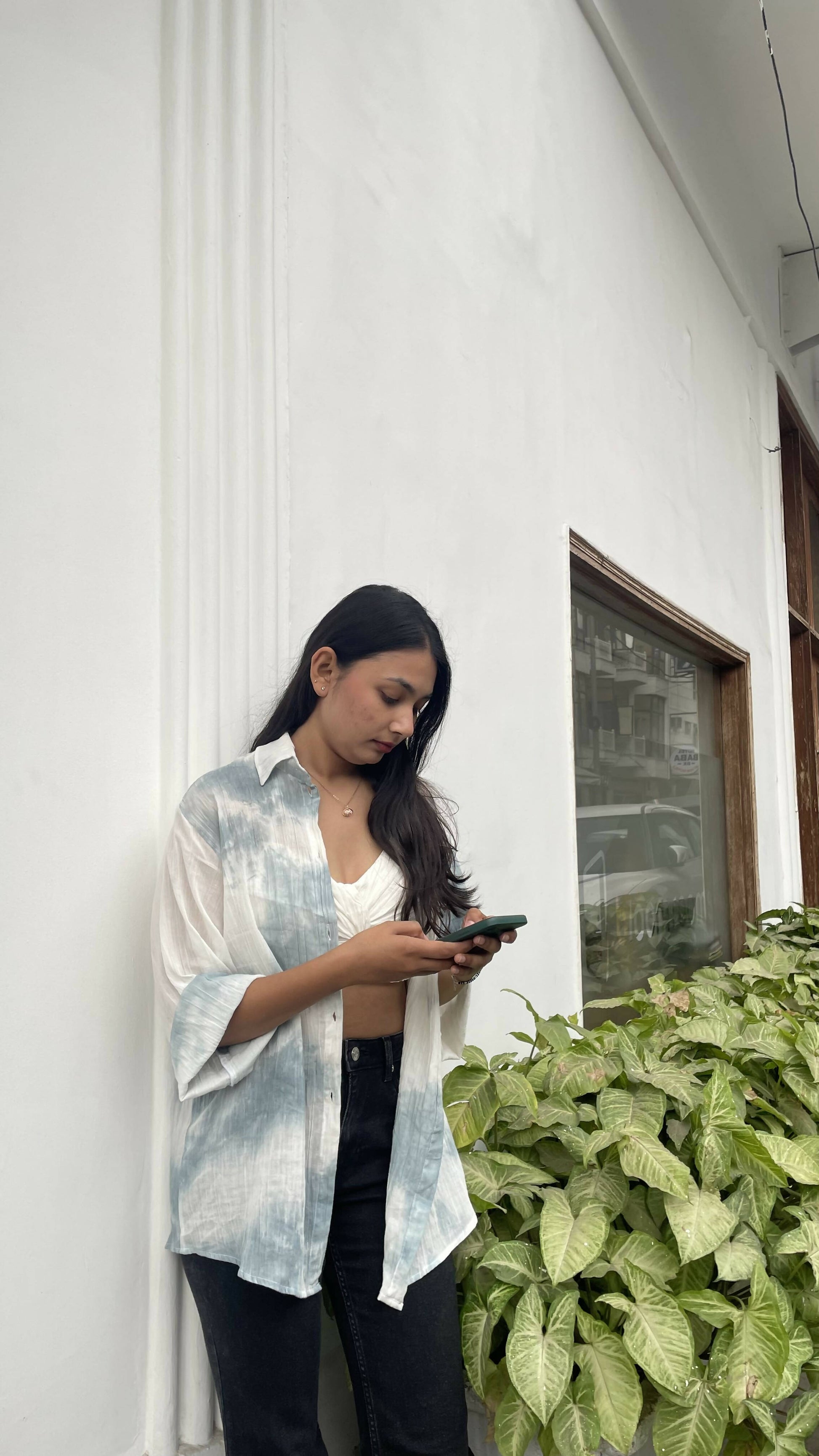 Shirt in crinkled cotton weave. Relaxed fit with dropped shoulders, long sleeves and buttoned cuffs.