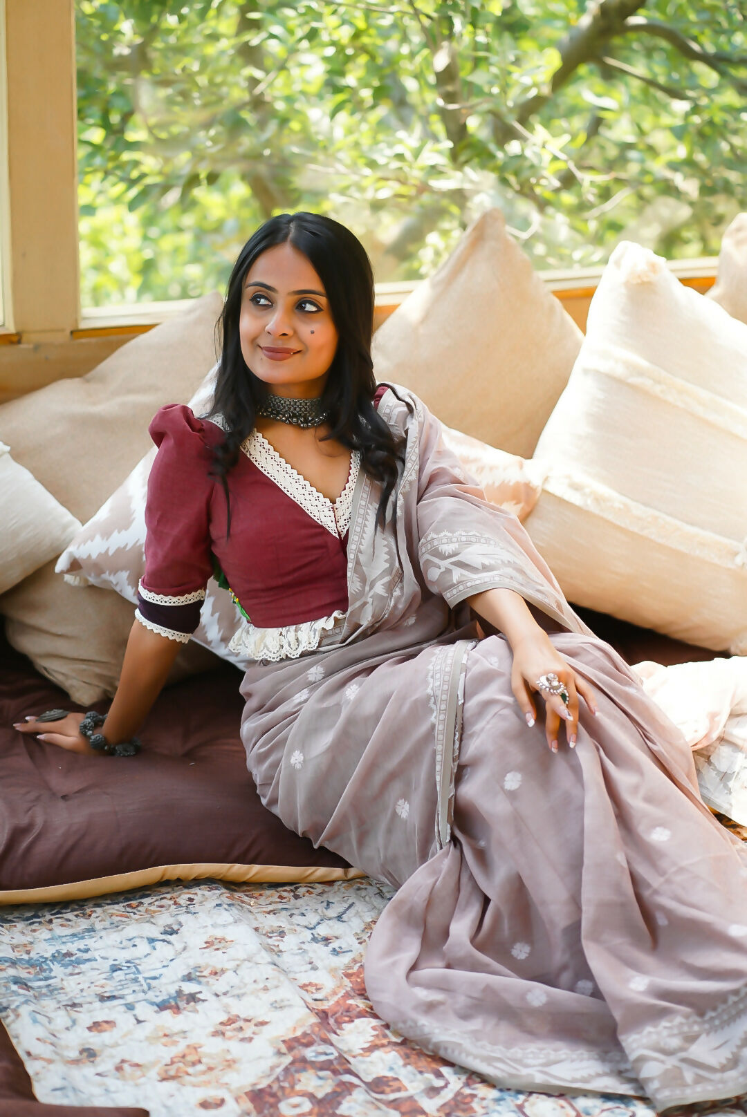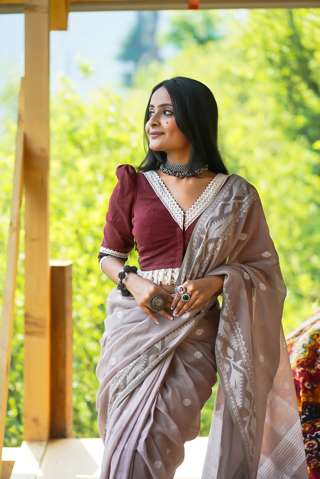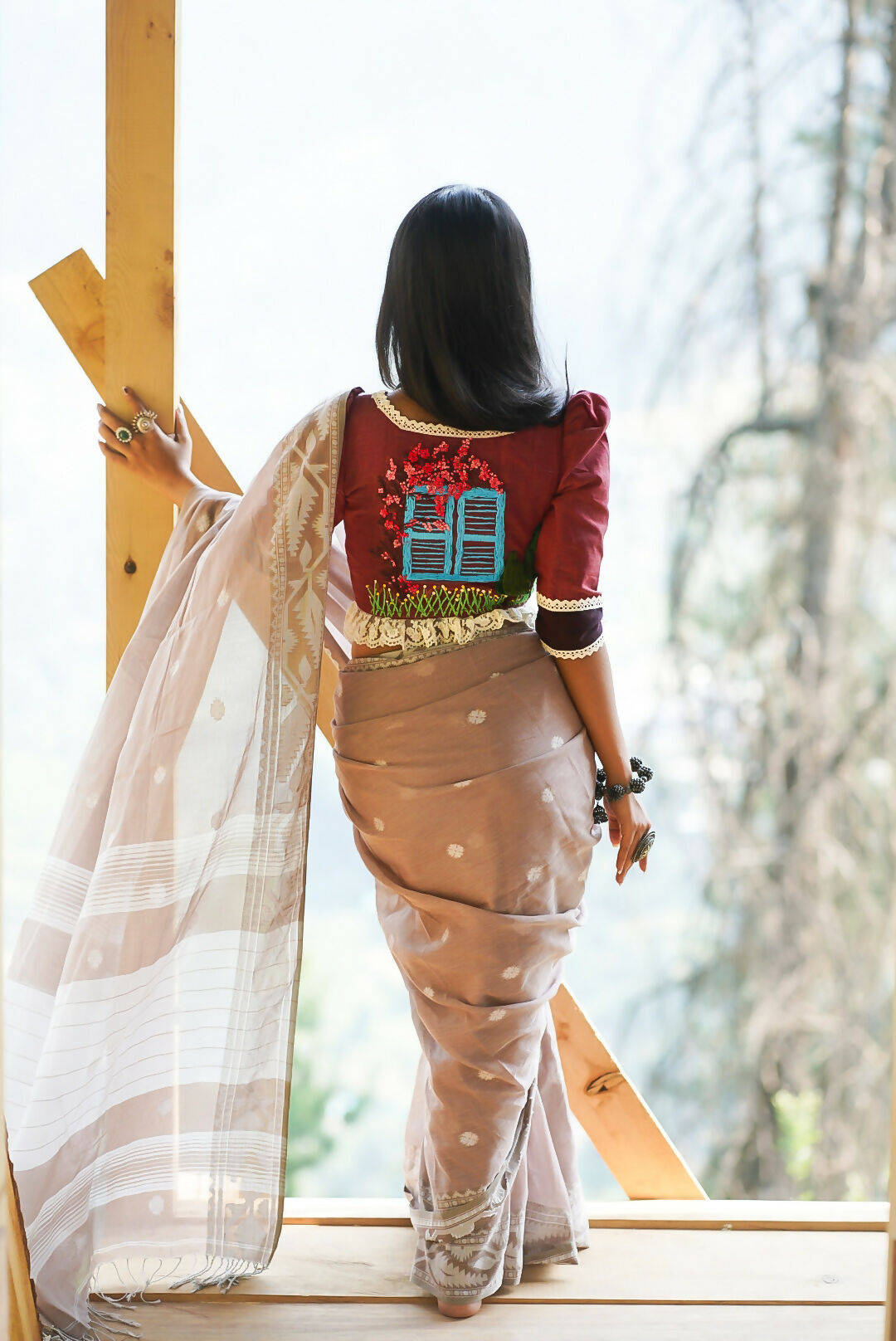 Elegantly designed to complement any saree, this blouse is a timeless fusion of tradition and style. And a perfect piece to add a statement to your attire! Pair it with a monotone saree or go all over by pairing it with a contrast saree. This one will surely will be a statement piece in your wardrobe.