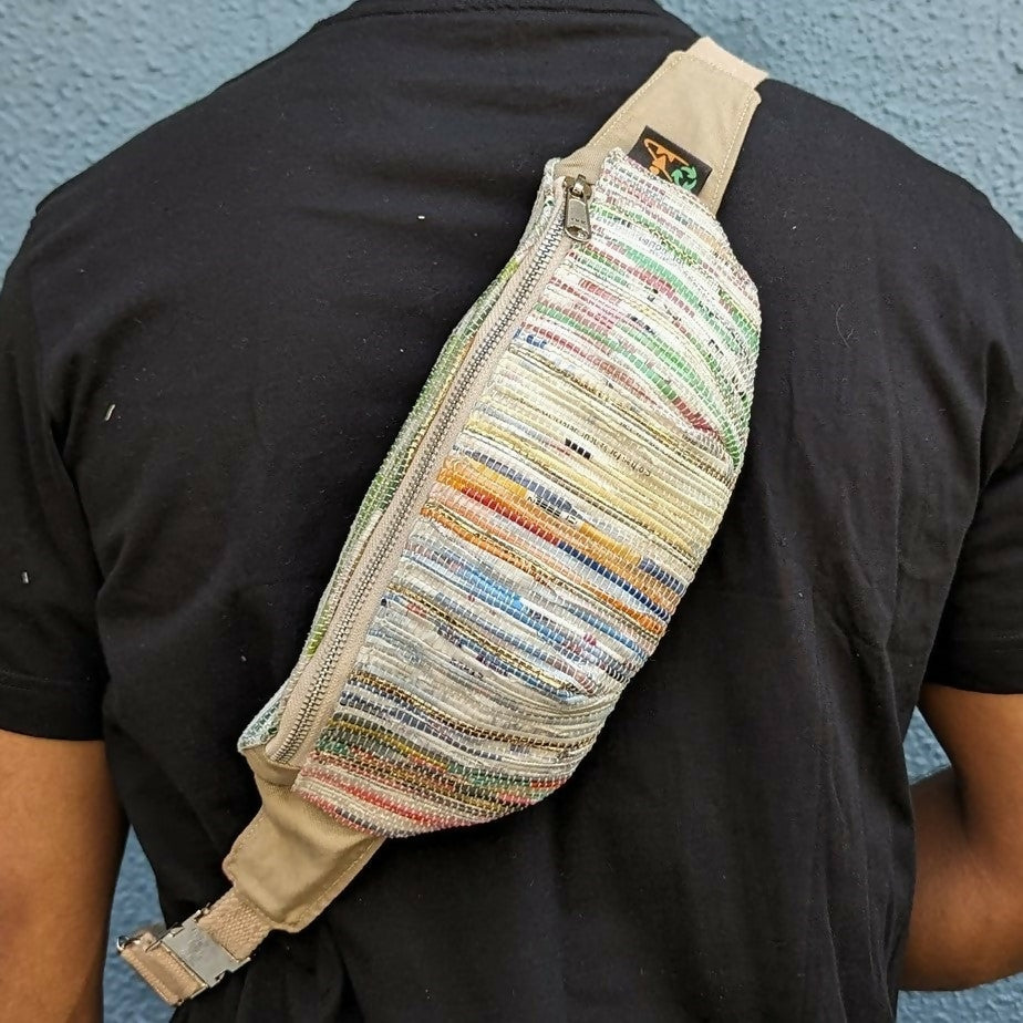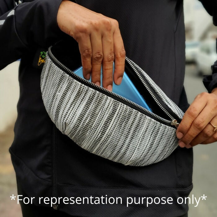 A Fanny Pack is one of the best utility accessories when we talk about bags. It comes in extremely handy while travelling or even in day to day life. This one from the Girija's collection is a special one with printed belts that proudly say, 'Upcycled-Handwoven'. We've added a zipper pocket at the back while also increasing the size of the fanny pack, so that you can put in all your essentials and are set for the day.