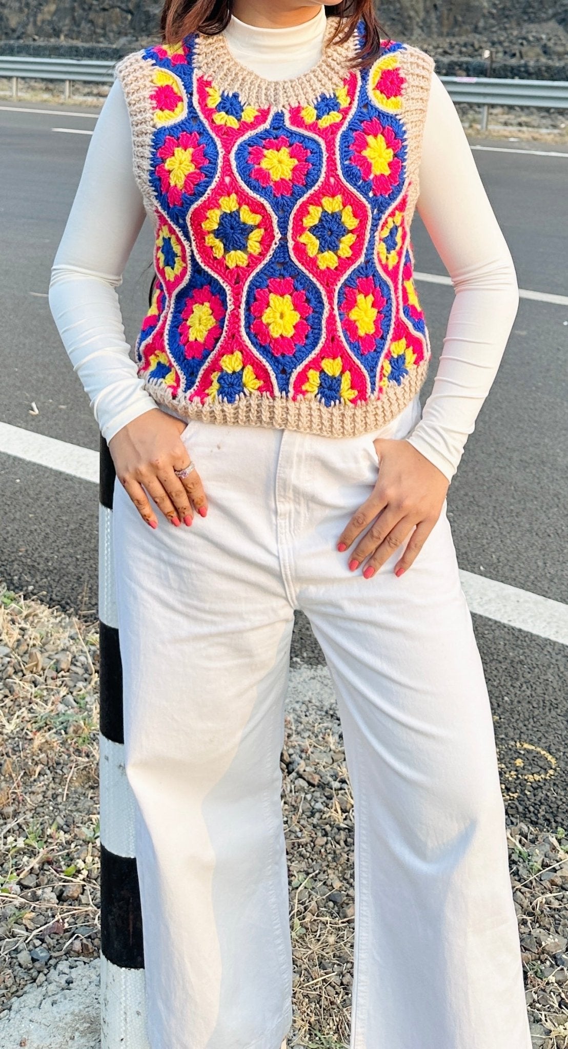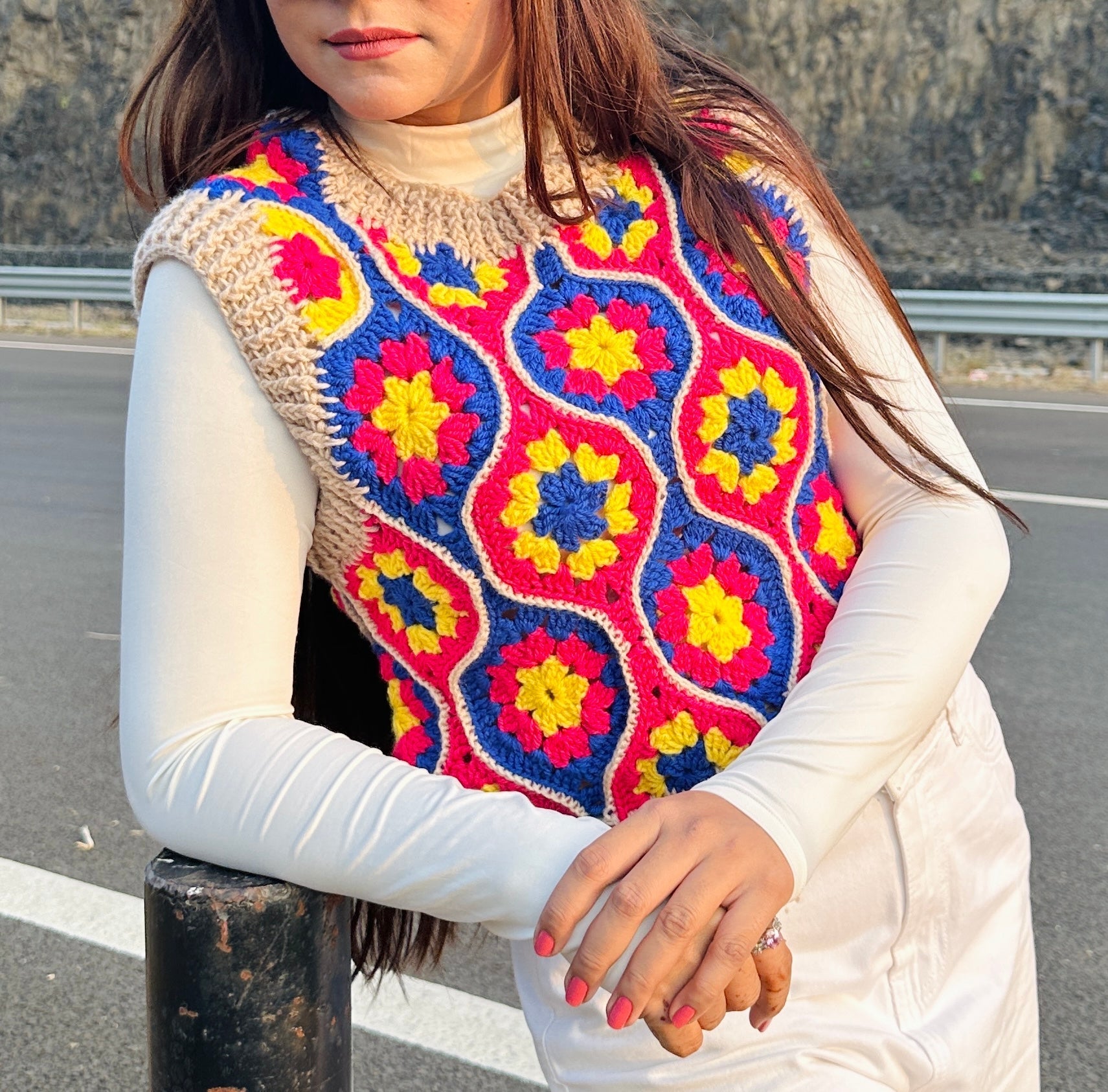 Multicoloured Crochet Vest