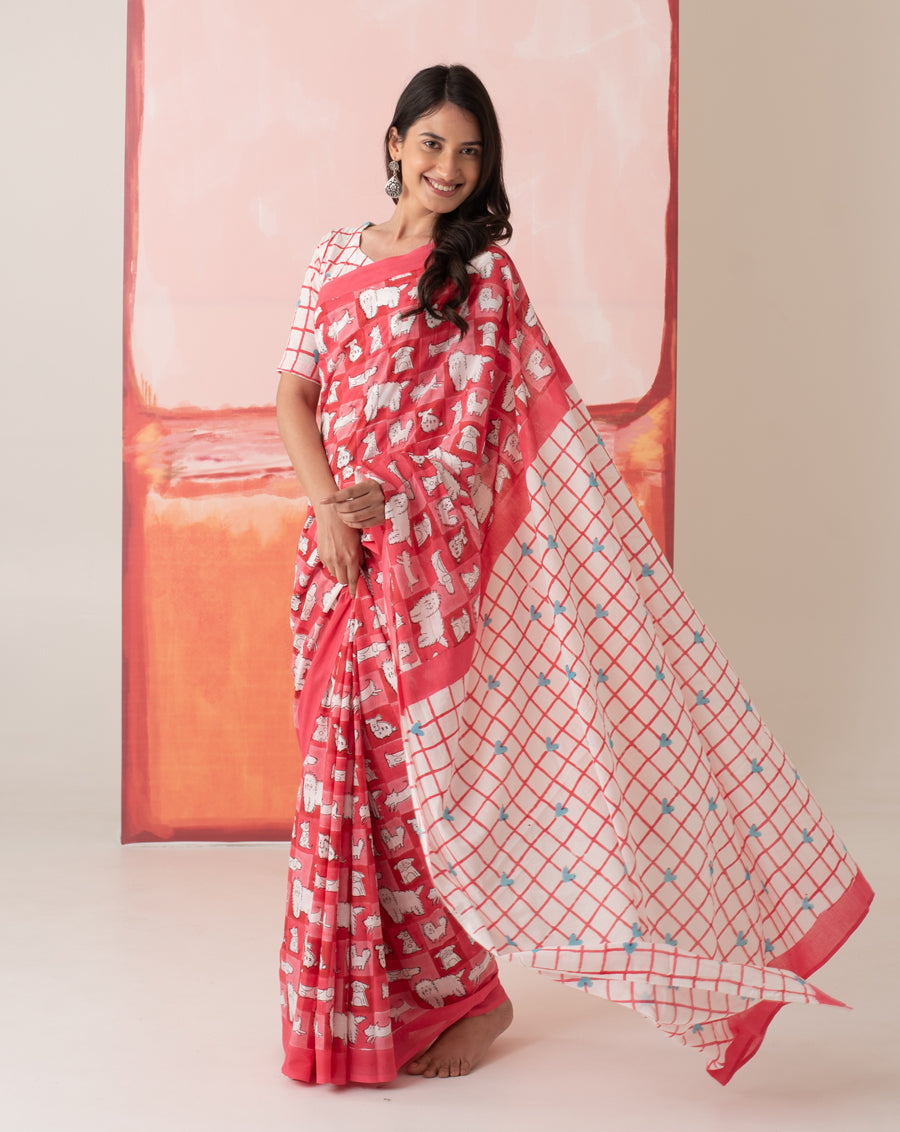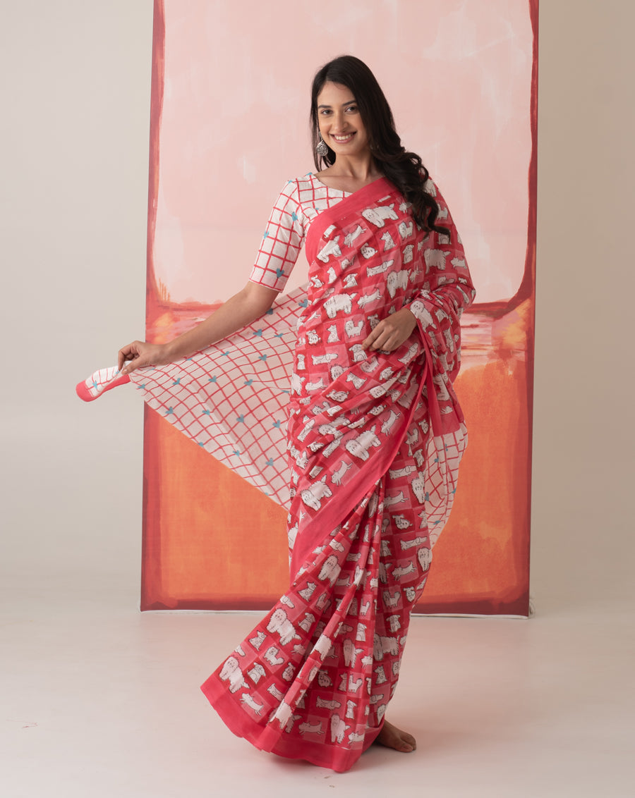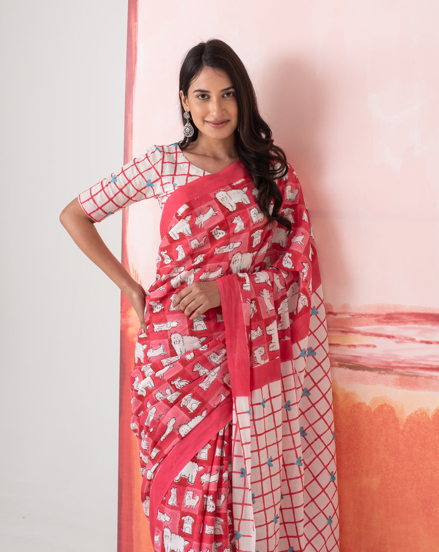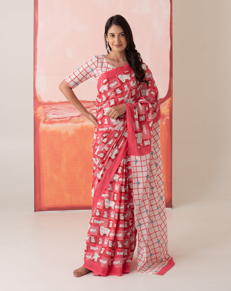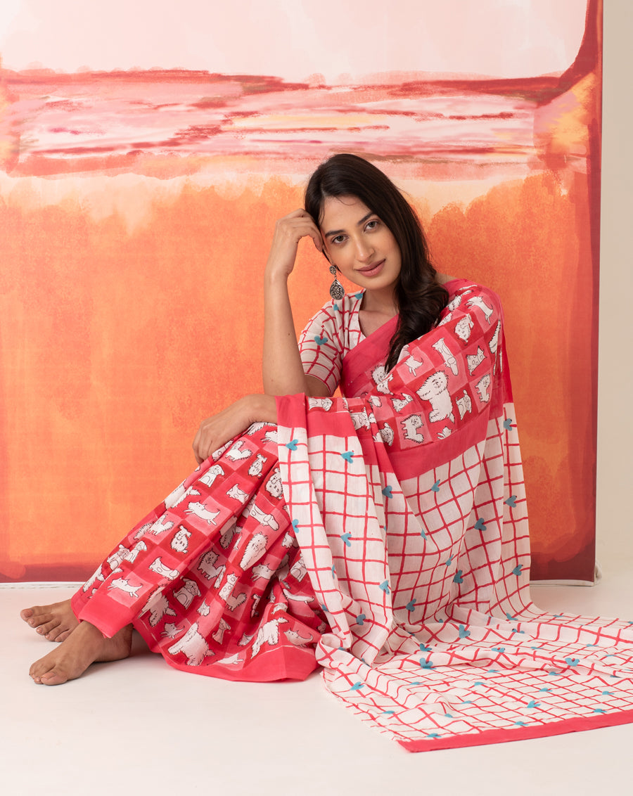 Mumtaaz's Woof - Dog Motif Mul Cotton Saree