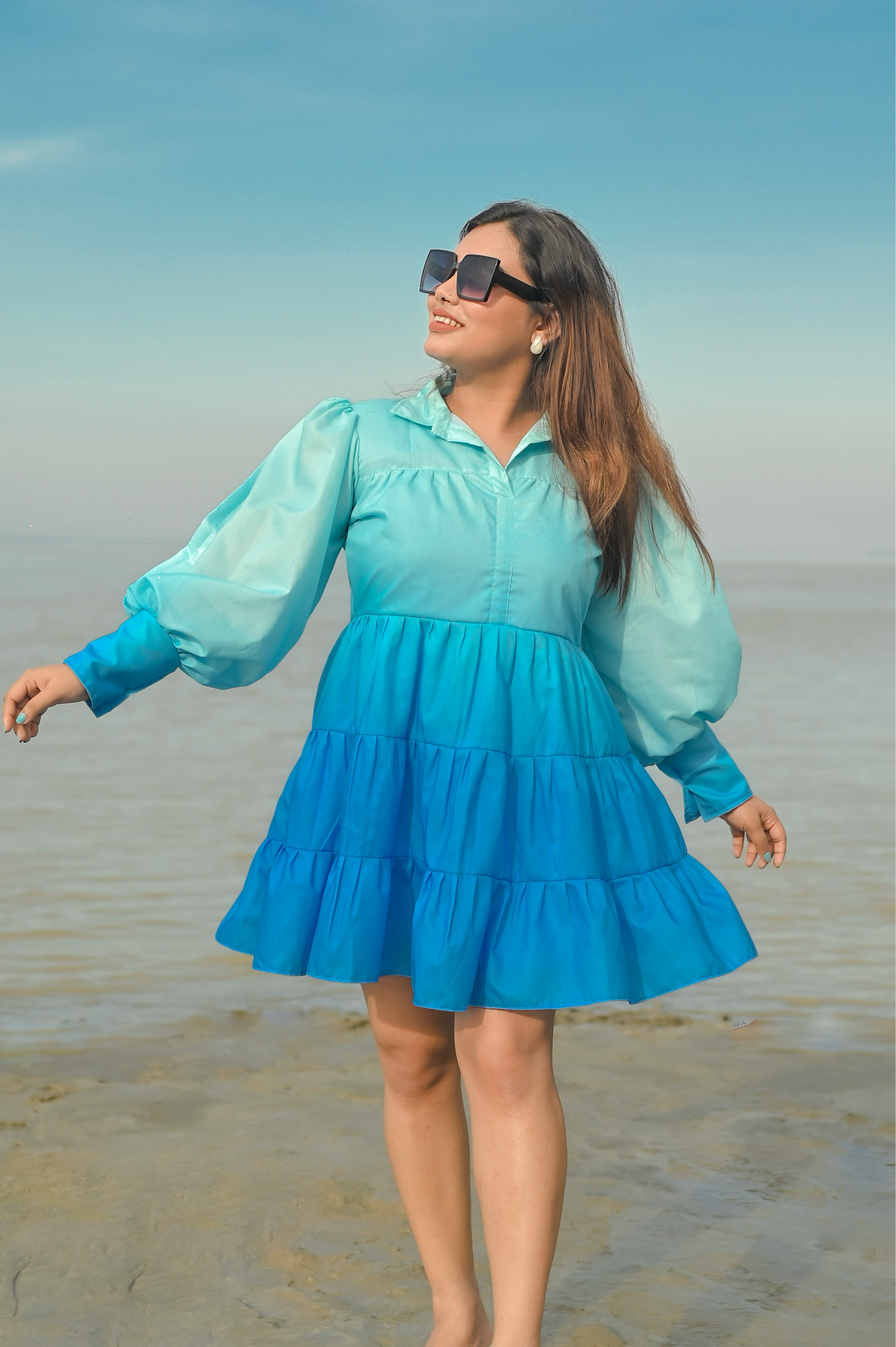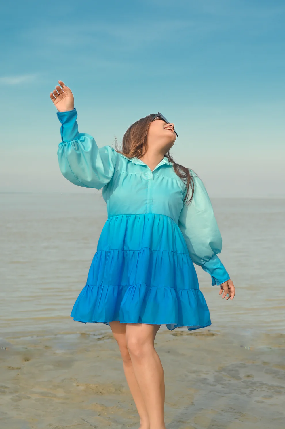 The Muslin Cotton Blue Ombre Shirt Dress is the perfect blend of comfort and style. Crafted from soft, breathable muslin cotton, this dress features a stunning blue ombre effect that gradually transitions in color for a modern, sophisticated look. The classic shirt dress design offers a relaxed yet flattering silhouette, making it ideal for both casual and semi-formal occasions.