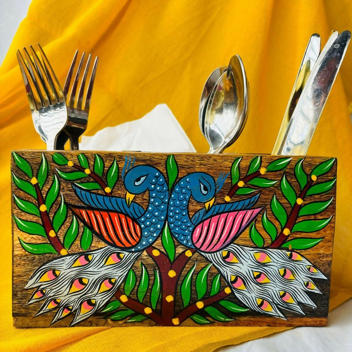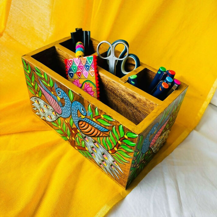 Do you find home organization boring? Not anymore! Add a vibrant spark to your home organization with these wooden multipurpose holders. The wooden holder is a fantastic representation of two of India’s heritage handiworks. It is made of native mango wood, exquisitely crafted by distinguished woodworkers of Saharanpur, then individually hand-painted by generational Pattachitra artists from Pingla.From cutlery to pens, these handcrafted wooden multipurpose holders, will hold onto every little trinket of yours safely.