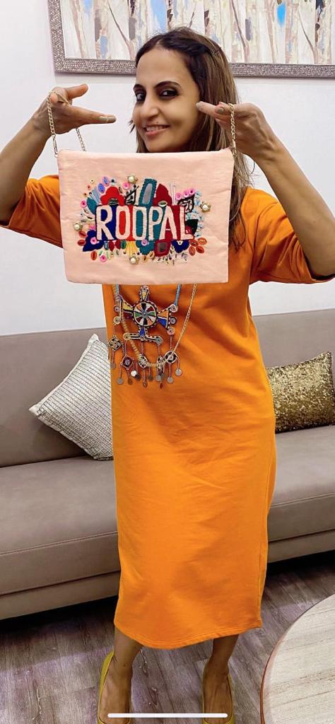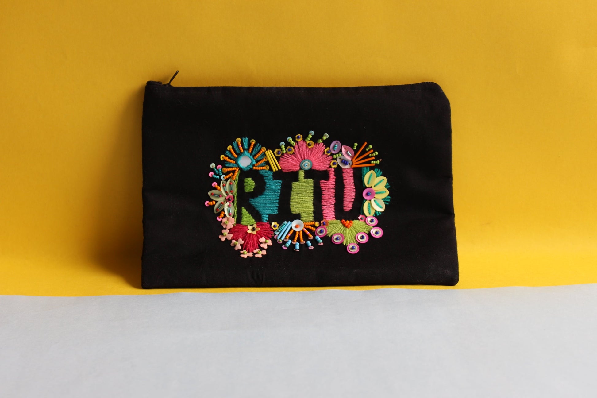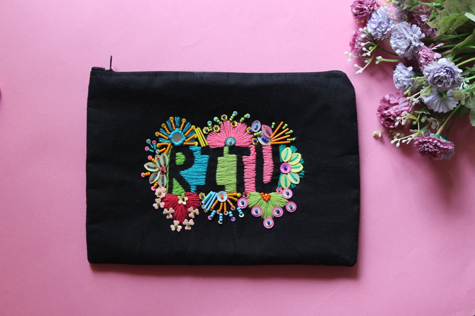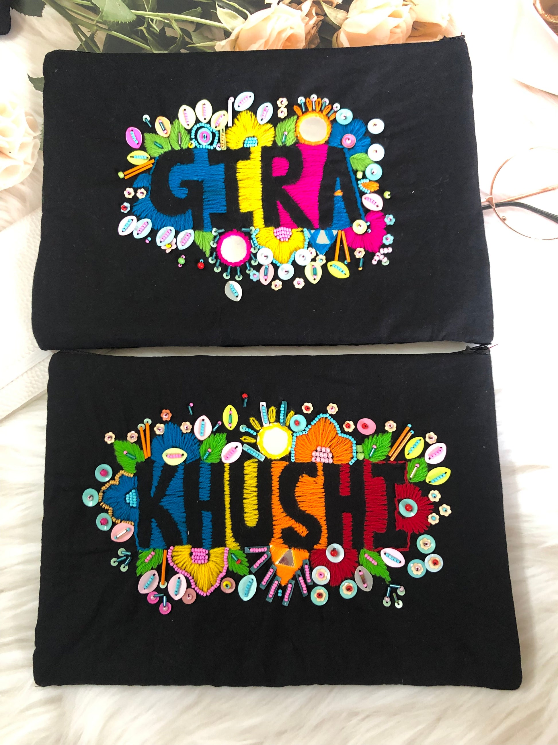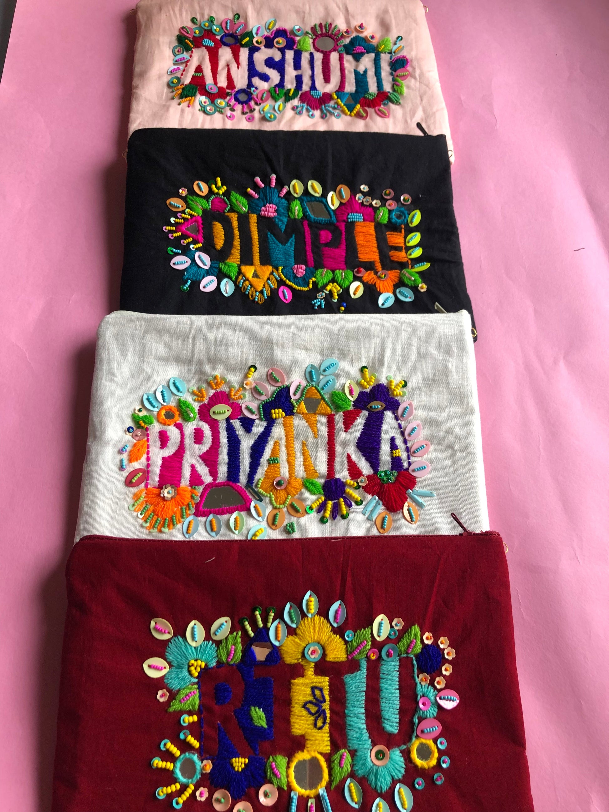 This personalized sling is made by our local kairgar by using threads, mirror and beads. The hand embroidery defines a true form of our Indian culture.