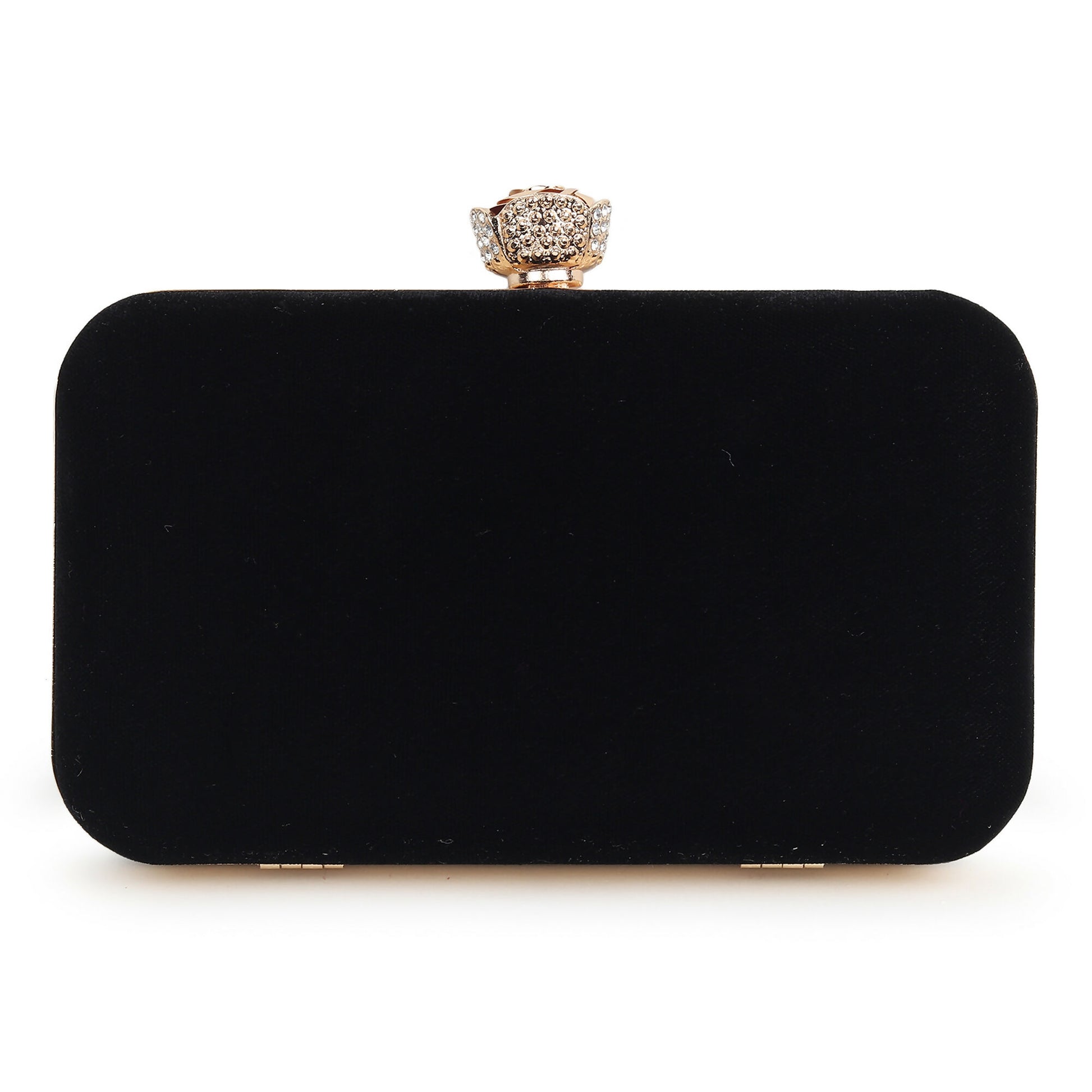 The Noir Black Velvet Dabka Work Clutch Bag embodies timeless luxury. Crafted from plush black velvet with intricate dabka embroidery, it exudes sophistication and fine craftsmanship. Complete with a detachable golden sling chain, it offers versatile styling options, making it the perfect statement piece for any elegant occasion.