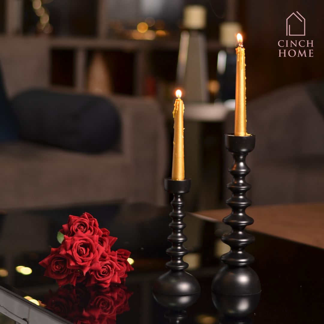 Nordic Matte Black Candle Stands (Set of 2)