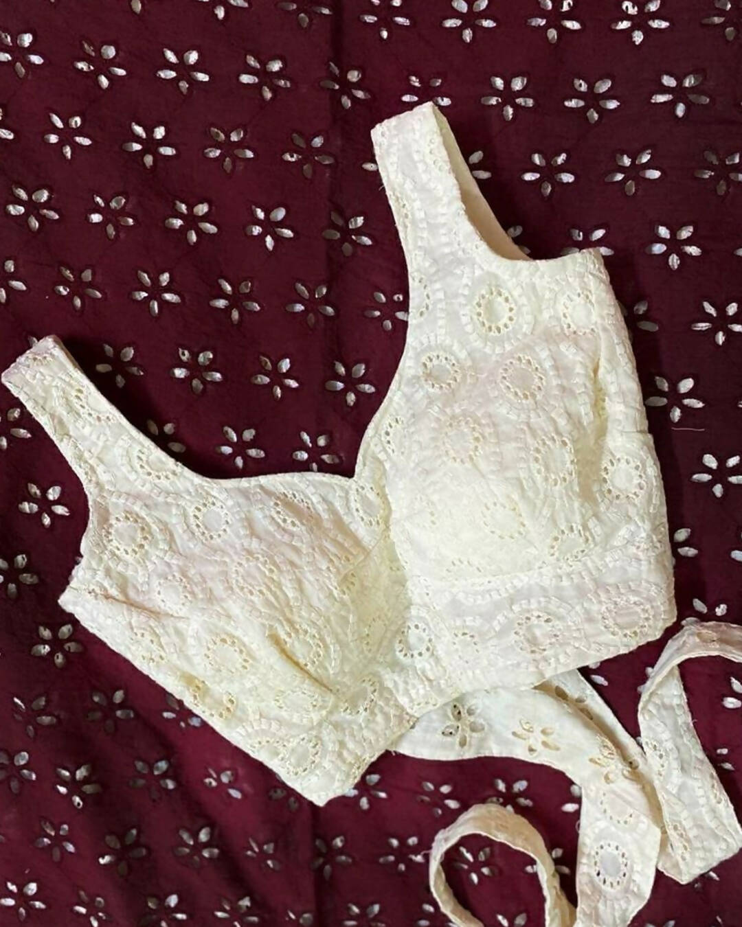 Elegantly designed to complement any saree, this blouse is a timeless fusion of tradition and style.
