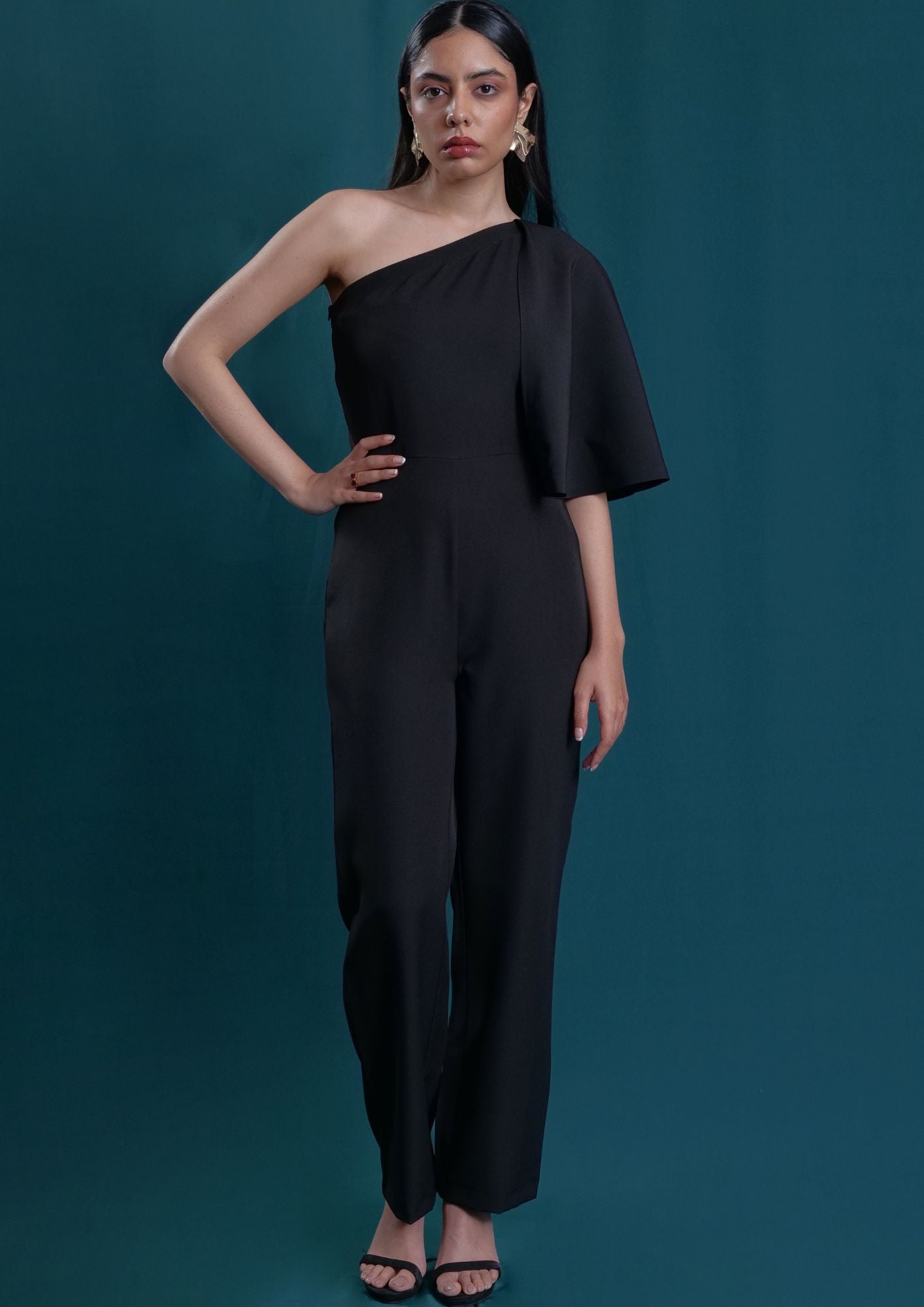 Stand out in style with our One Shoulder Black Jumpsuit! Effortlessly chic and ready for any occasion.