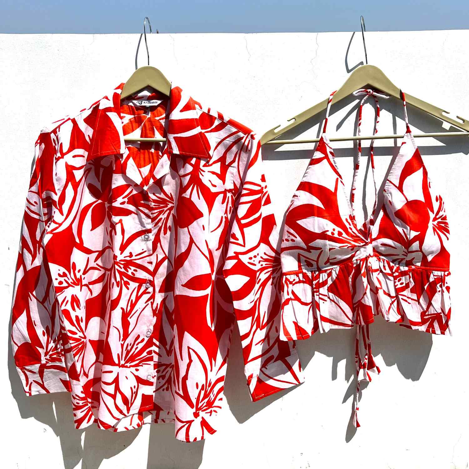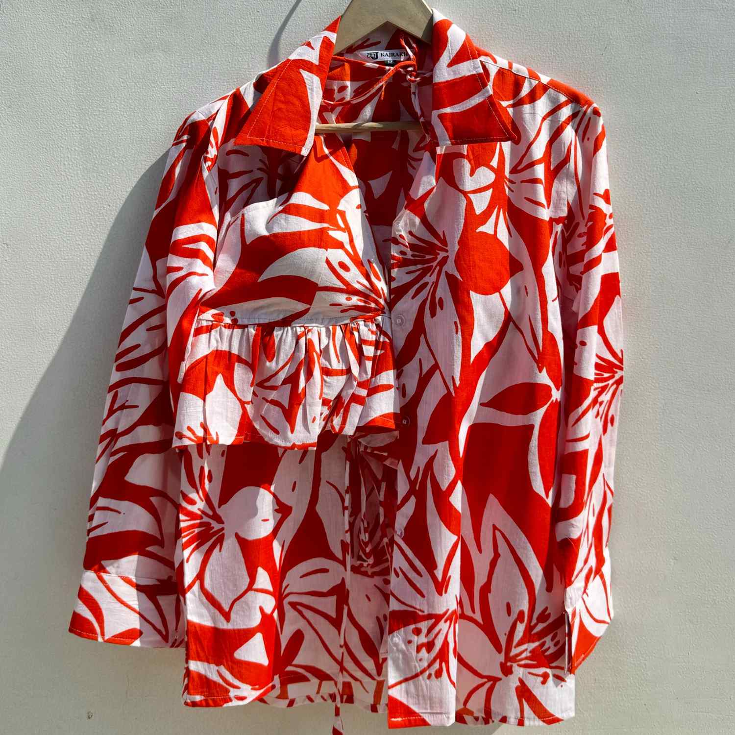 The Orange Abstract Floral Overall Combo is vibrant and stylish piece features a bold orange base adorned with a captivating abstract floral pattern, creating a unique, eye-catching design that exudes personality. Made from soft, breathable fabric, this overall offers a comfortable, relaxed fit, perfect for a variety of casual occasions. Whether you're out for a day of sightseeing, attending a fun brunch, this versatile combo will effortlessly elevate your style.