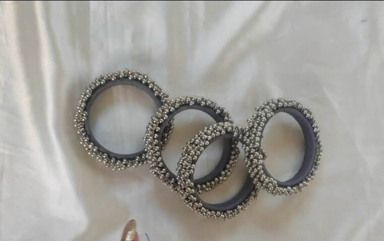 Discover elegance with our Oxidized Silver Ghungro Bangle. This handcrafted beauty blends tradition and modern style. Its charming oxidized finish and jingling ghungro charms make it perfect for any occasion. Elevate your look effortlessly with this exquisite piece.
