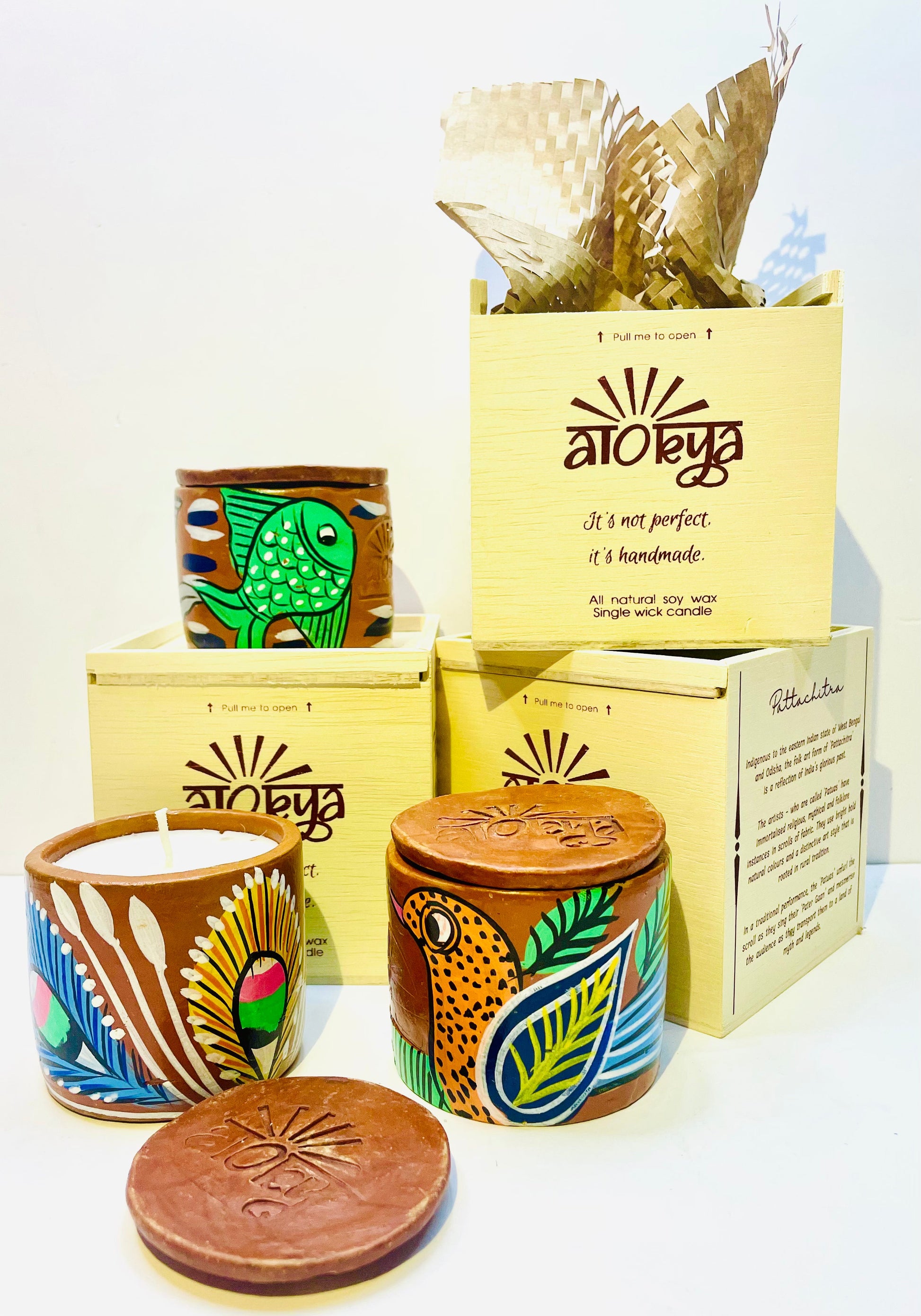 The Terracotta jars feature the hand-painted folk art of Pattachitra.
