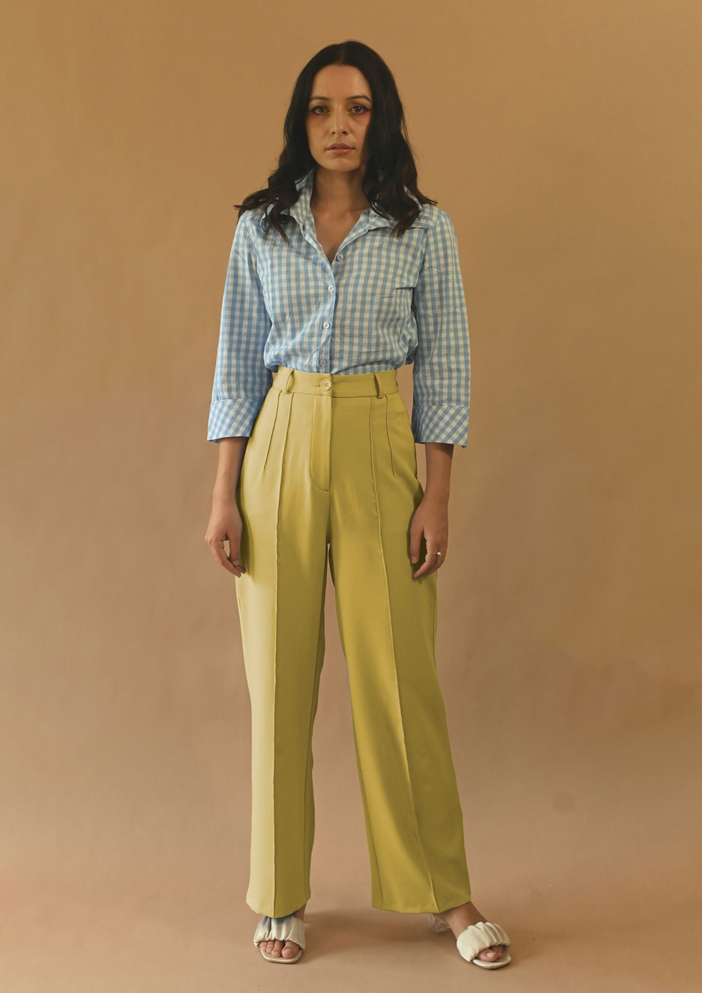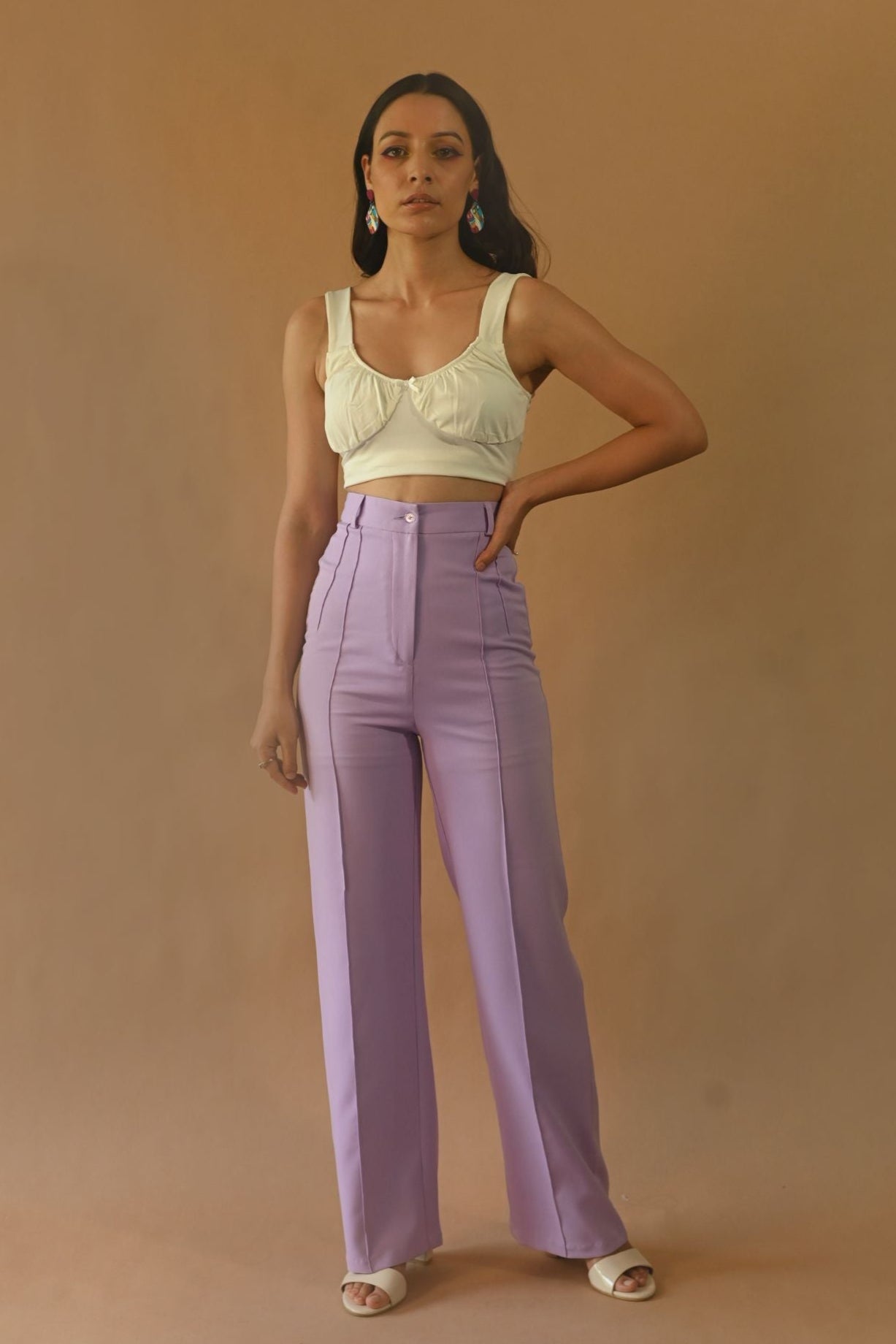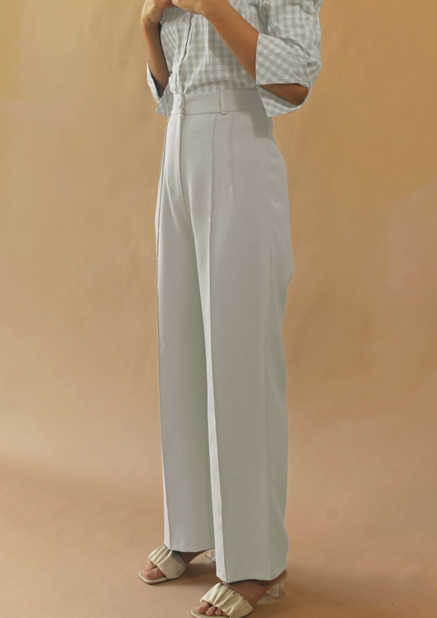Elevate your style with these high-waist straight-cut trousers. They boast a chic parallel seam detail on the front, adding flair to any outfit. Perfect for a polished and sophisticated look.