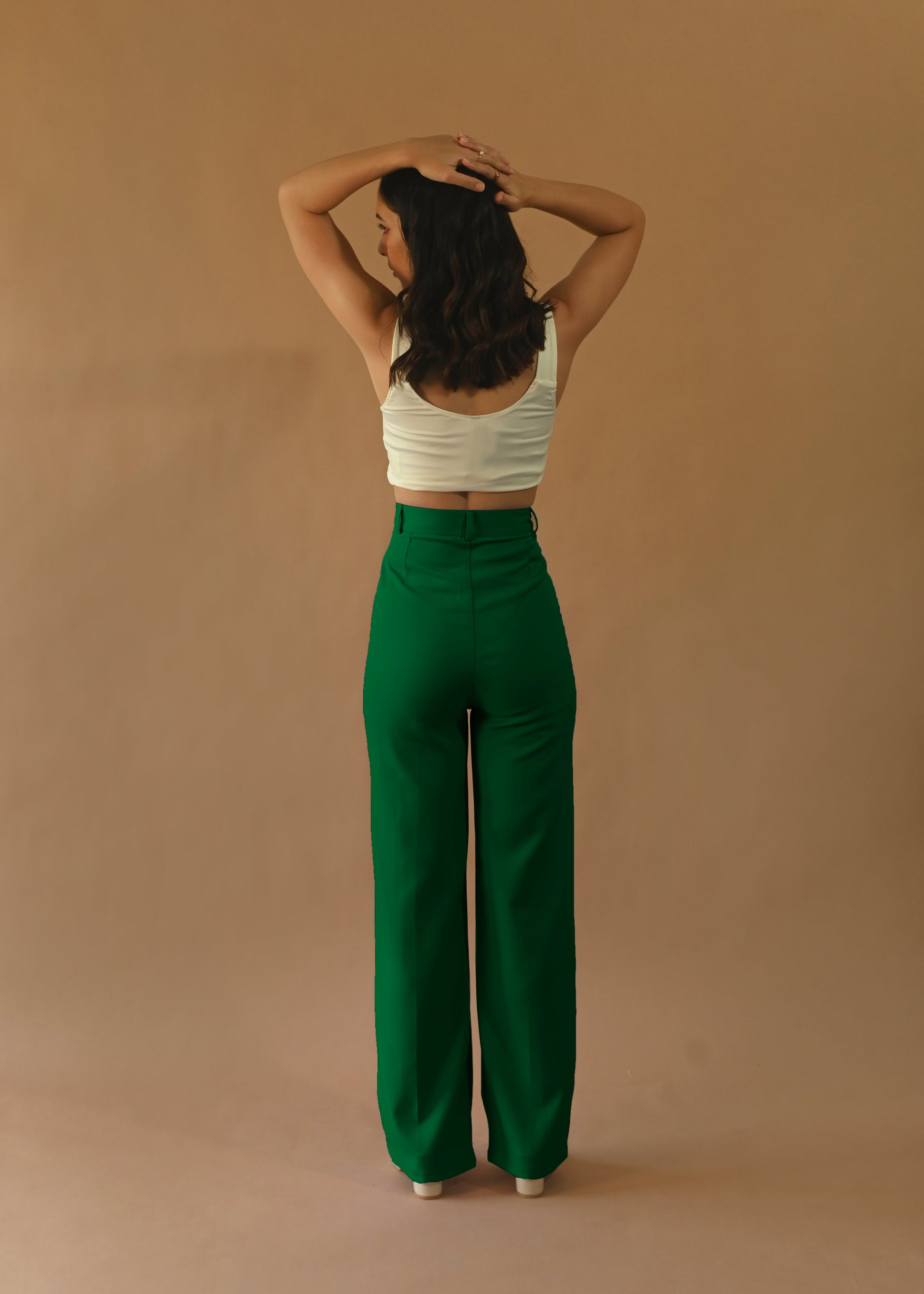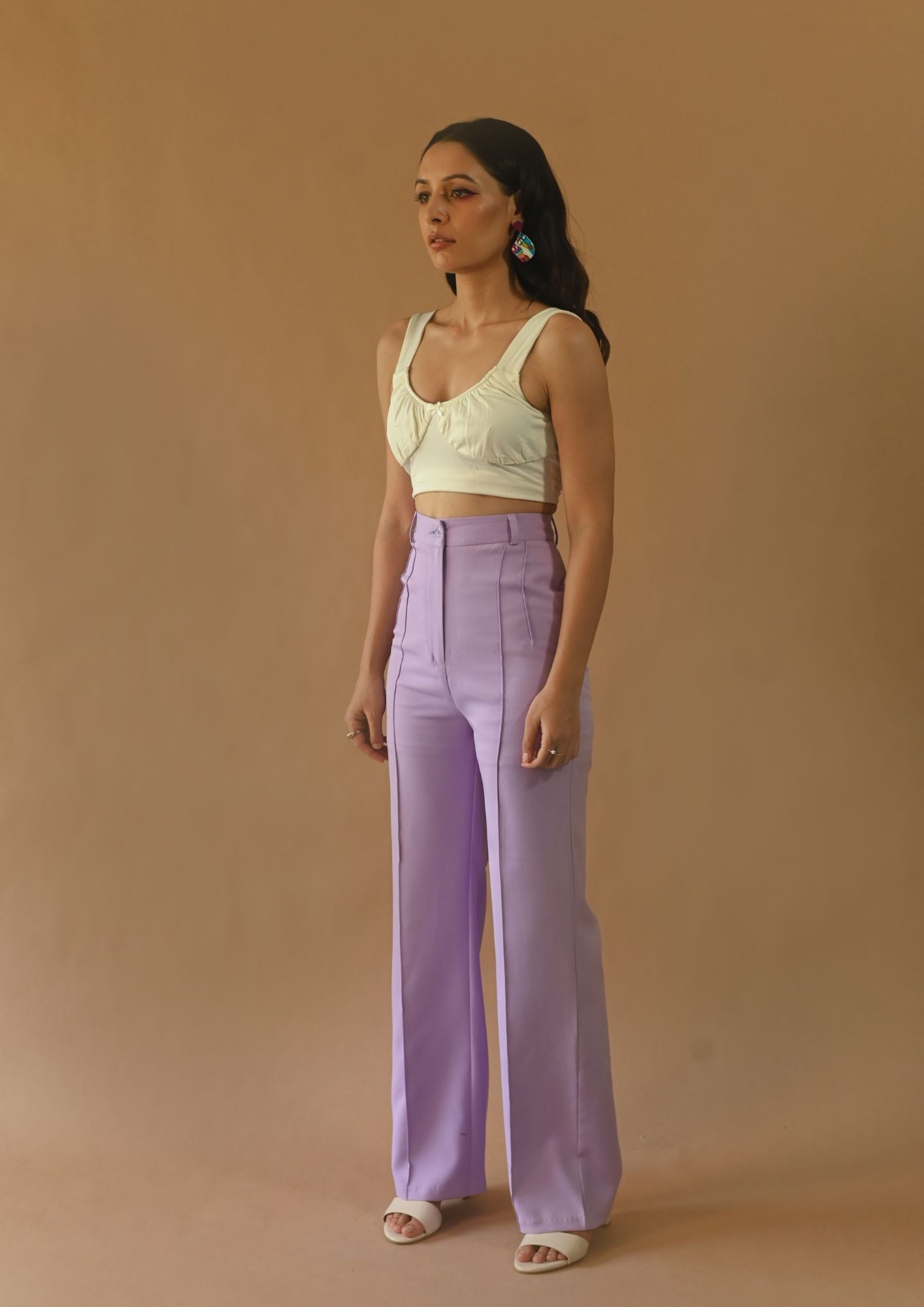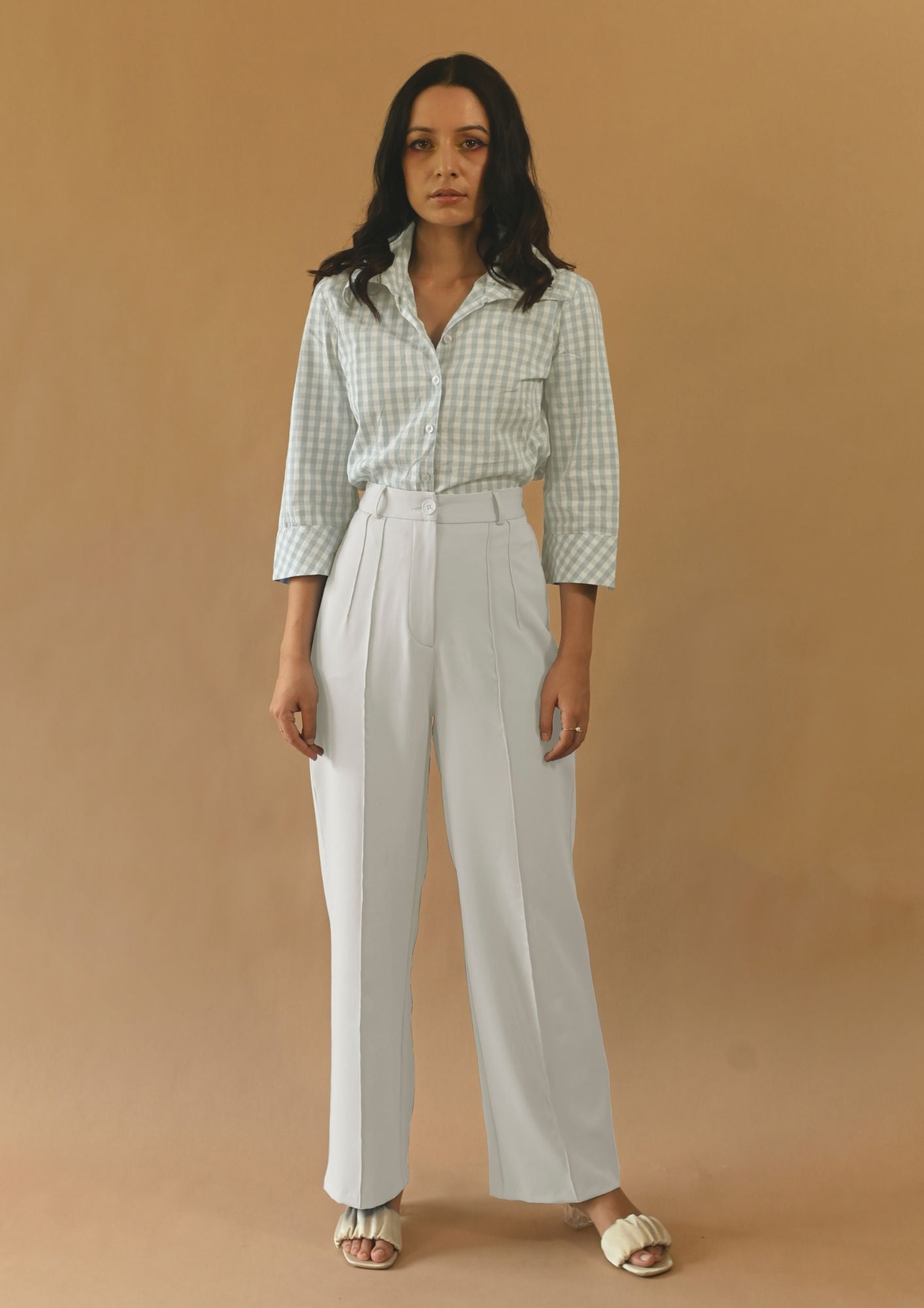 Elevate your style with these high-waist straight-cut trousers. They boast a chic parallel seam detail on the front, adding flair to any outfit. Perfect for a polished and sophisticated look.