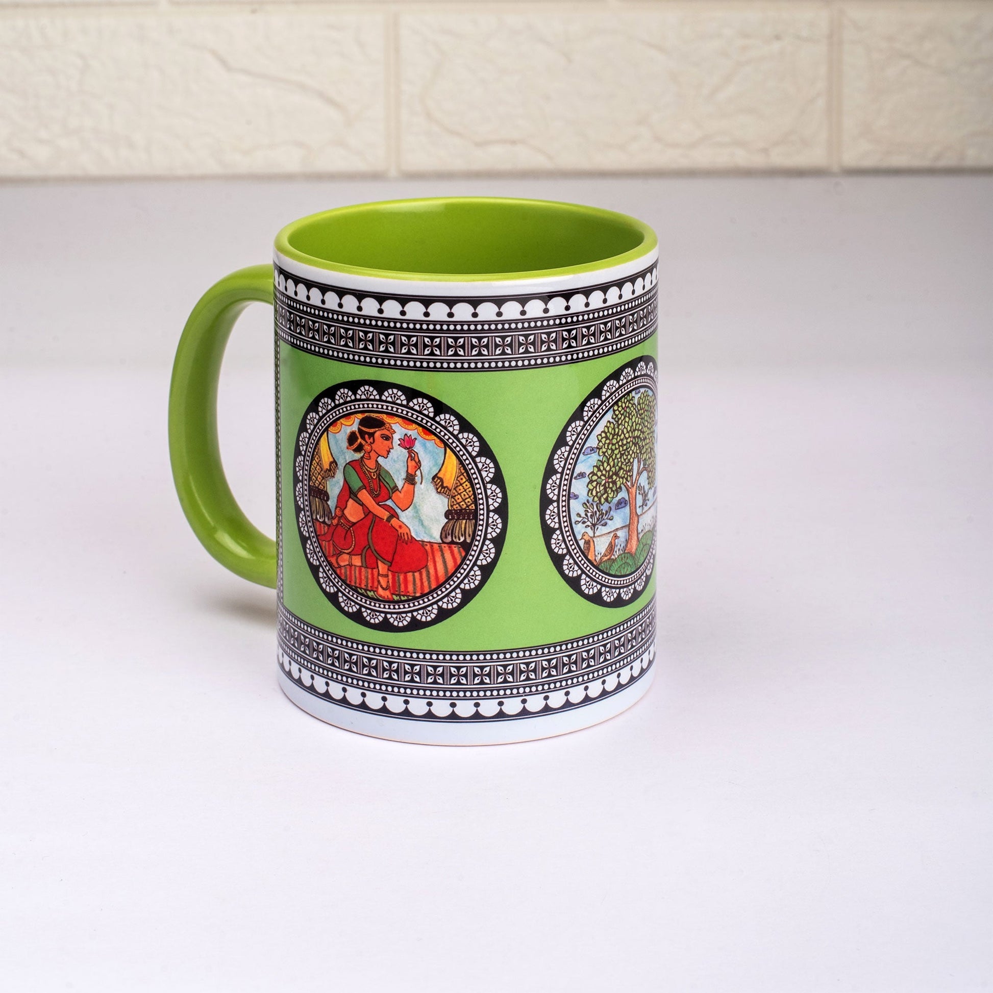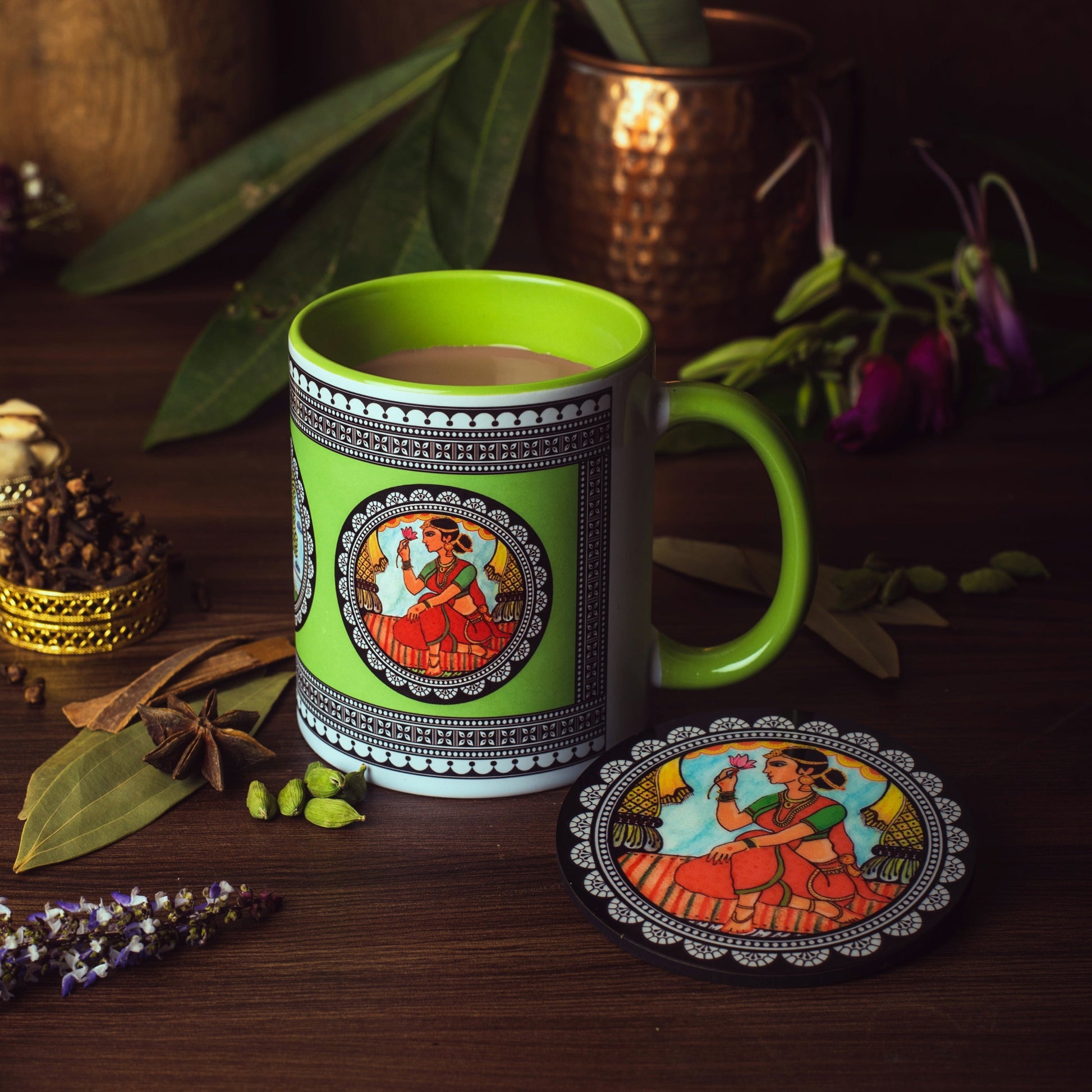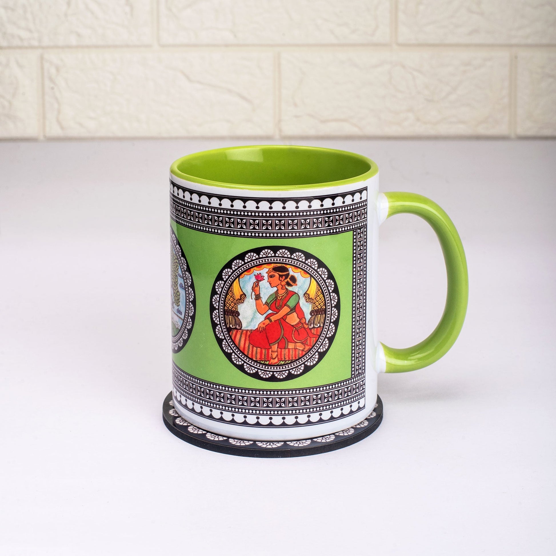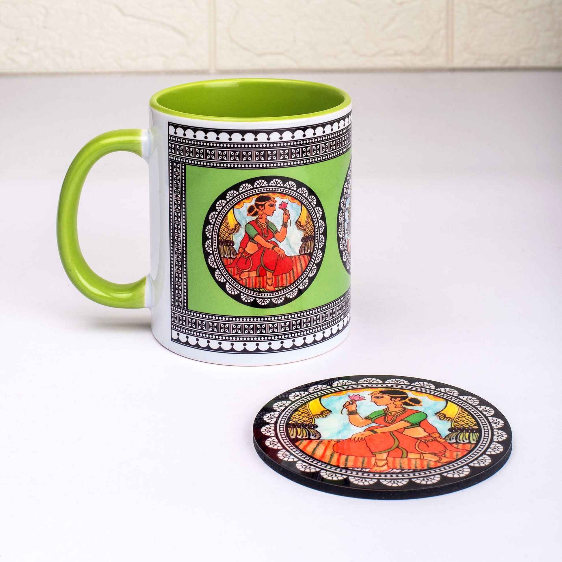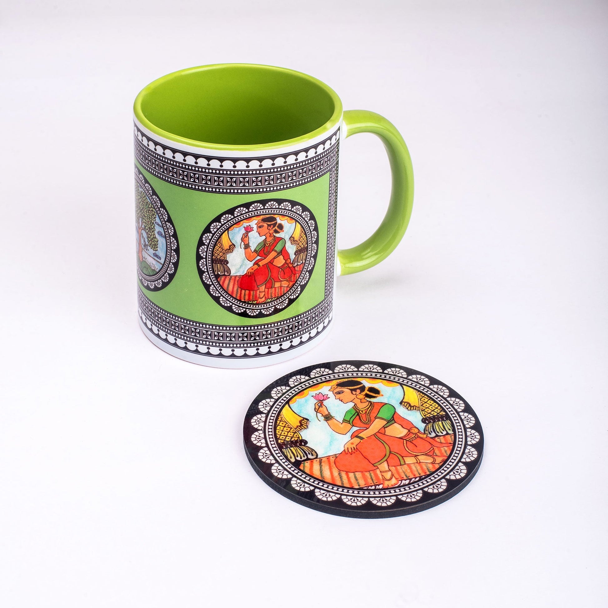 Paripatra Pattachitra Mug with Coaster - Green