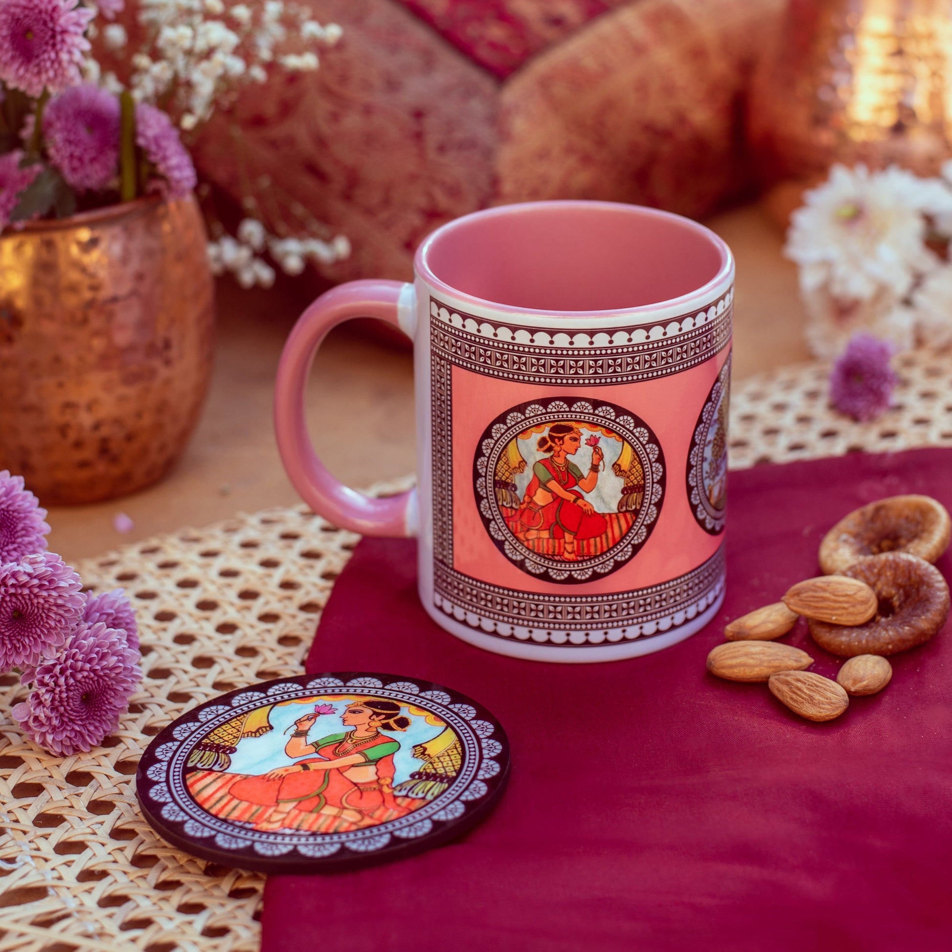 The Paripatra Pattachitra Mug and Coaster showcase a stunning design made with beautiful handpainted illustrations inspired by Indian artforms, celebrating the rich culture and heritage of our beautiful country! This design is a must-have and perfect for gifting to your loved ones!