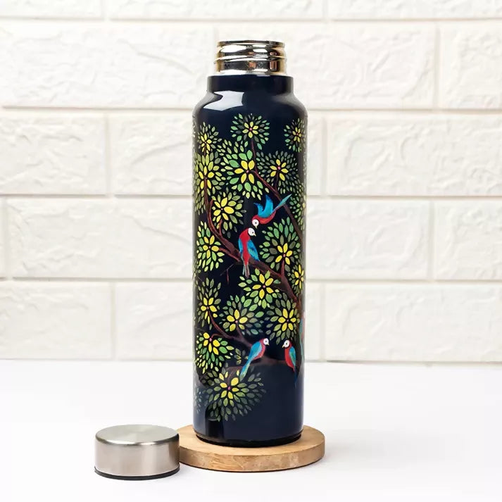 The Parrot's Paradise Steel bottle features a beautiful canopy of an enormous tree full of a pandemonium of parrots. This bottle is not just a beautiful addition to your drinkware collection but also durable as it is made with high quality 304 grade steel. No wonder this is the most preferred choice when it comes to beautiful yet thoughtful gifting.