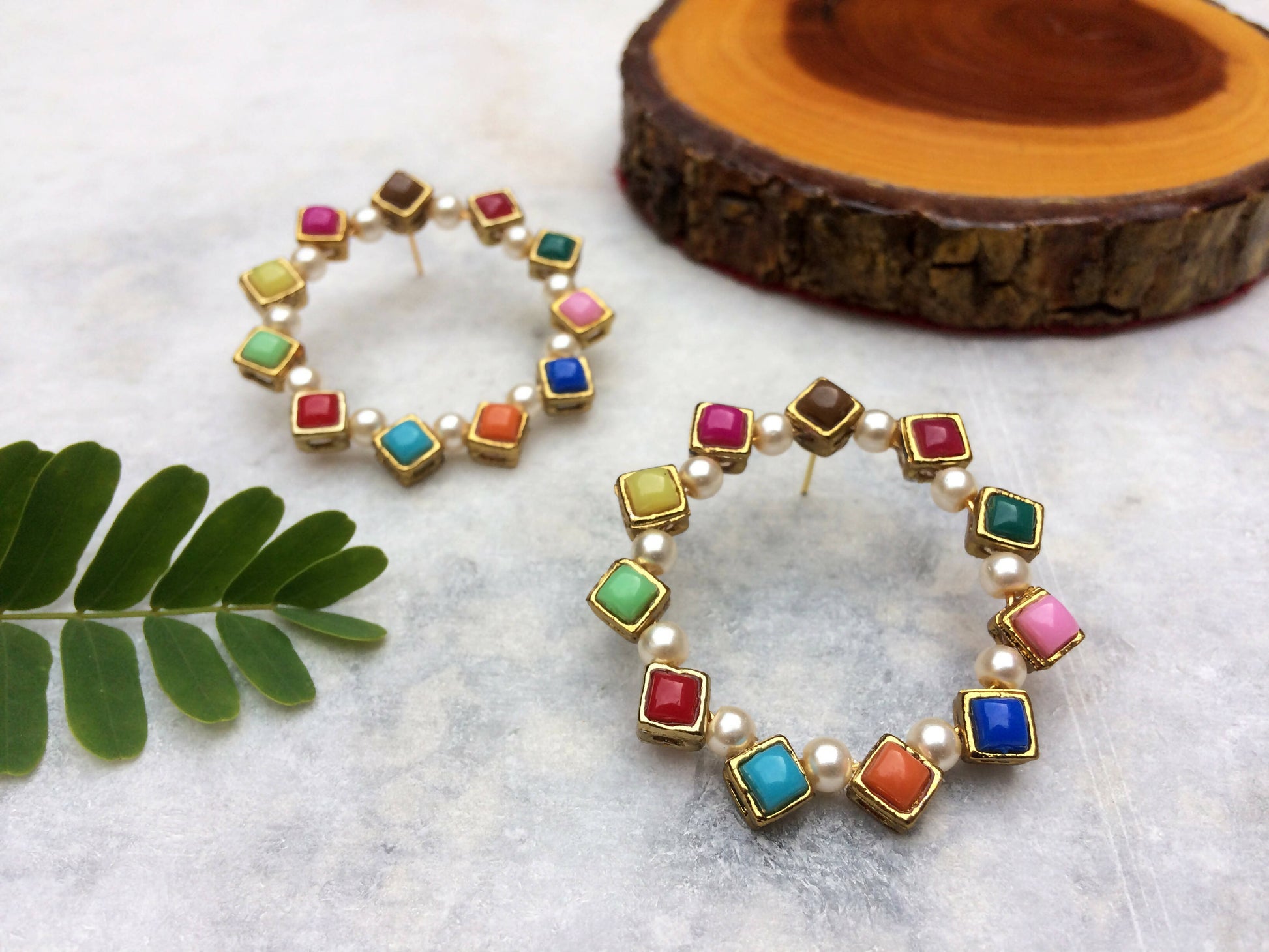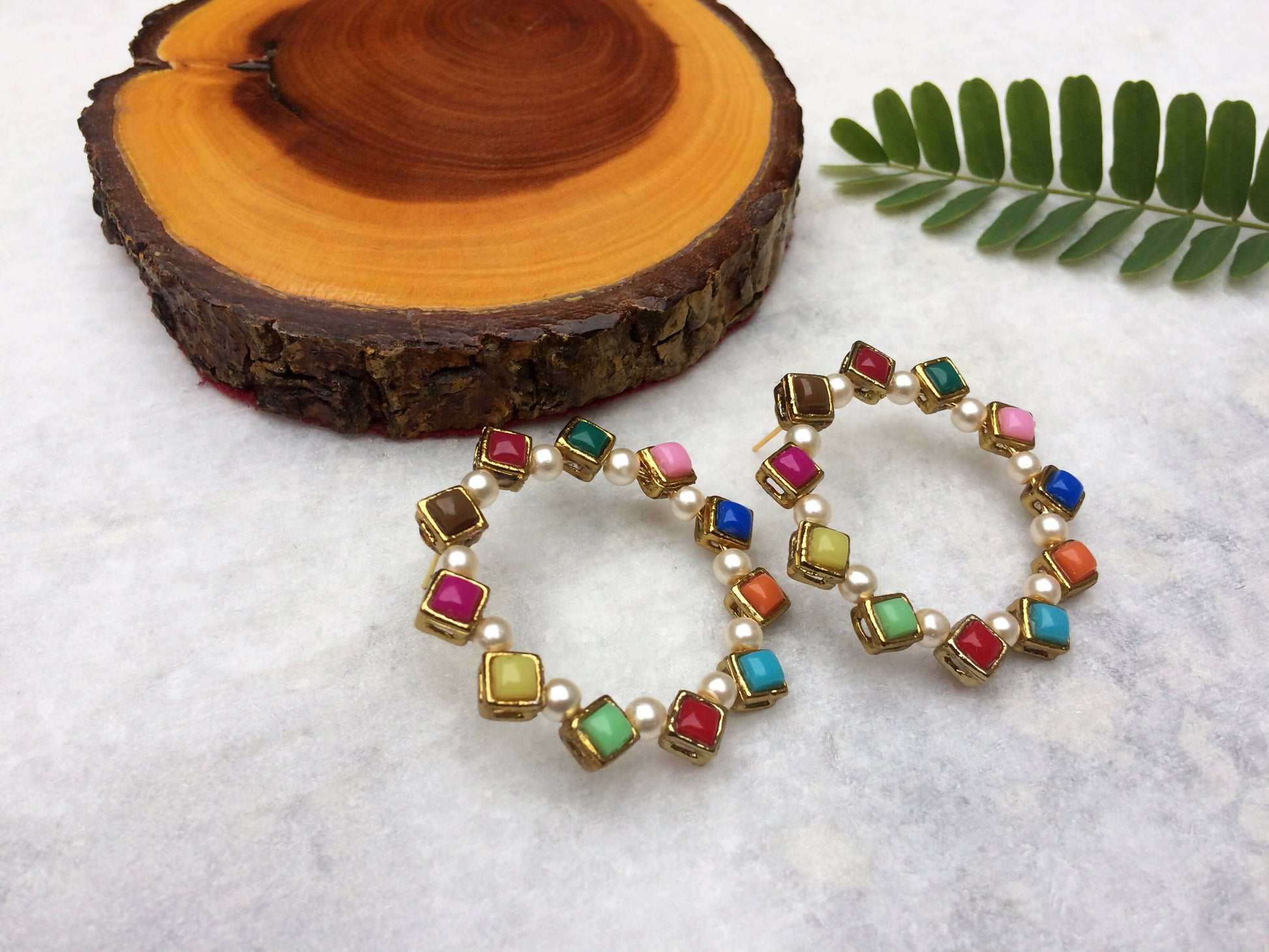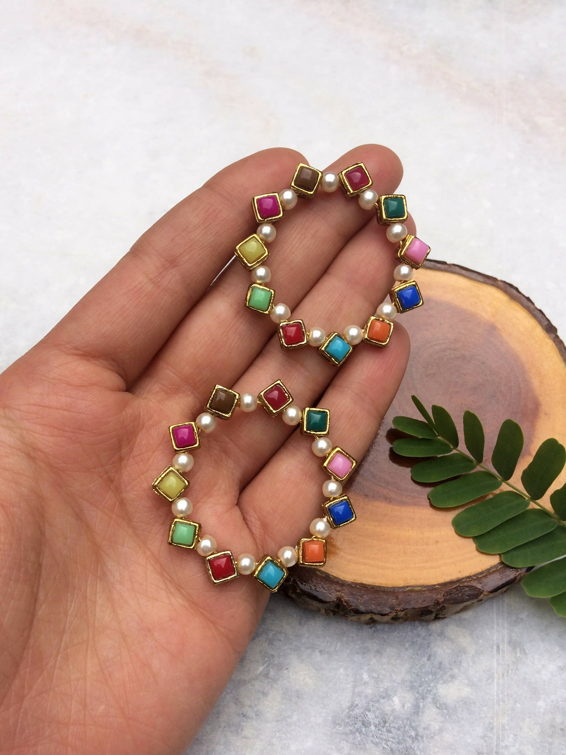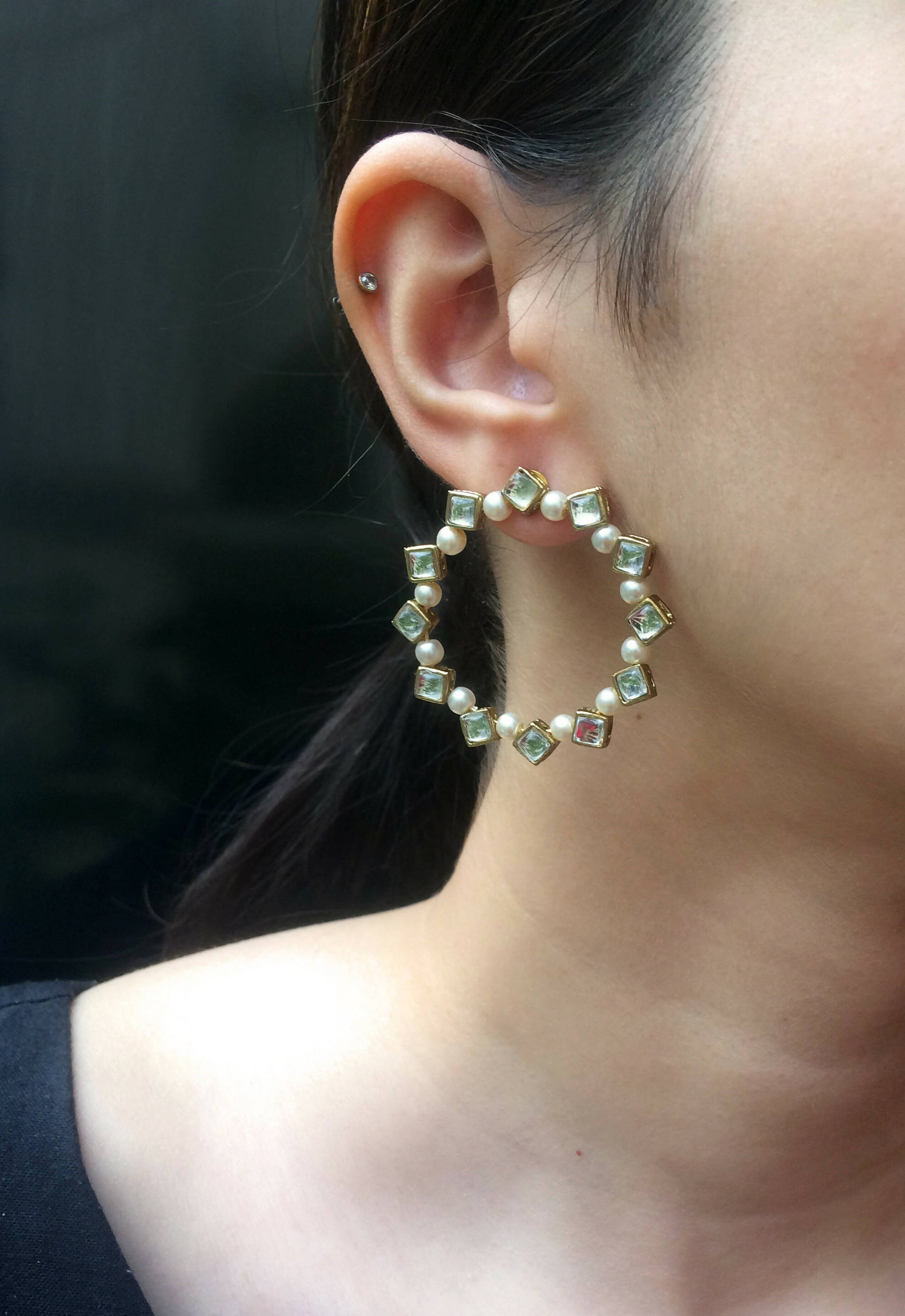 Pearl and Resin Kundan 2D Hoop