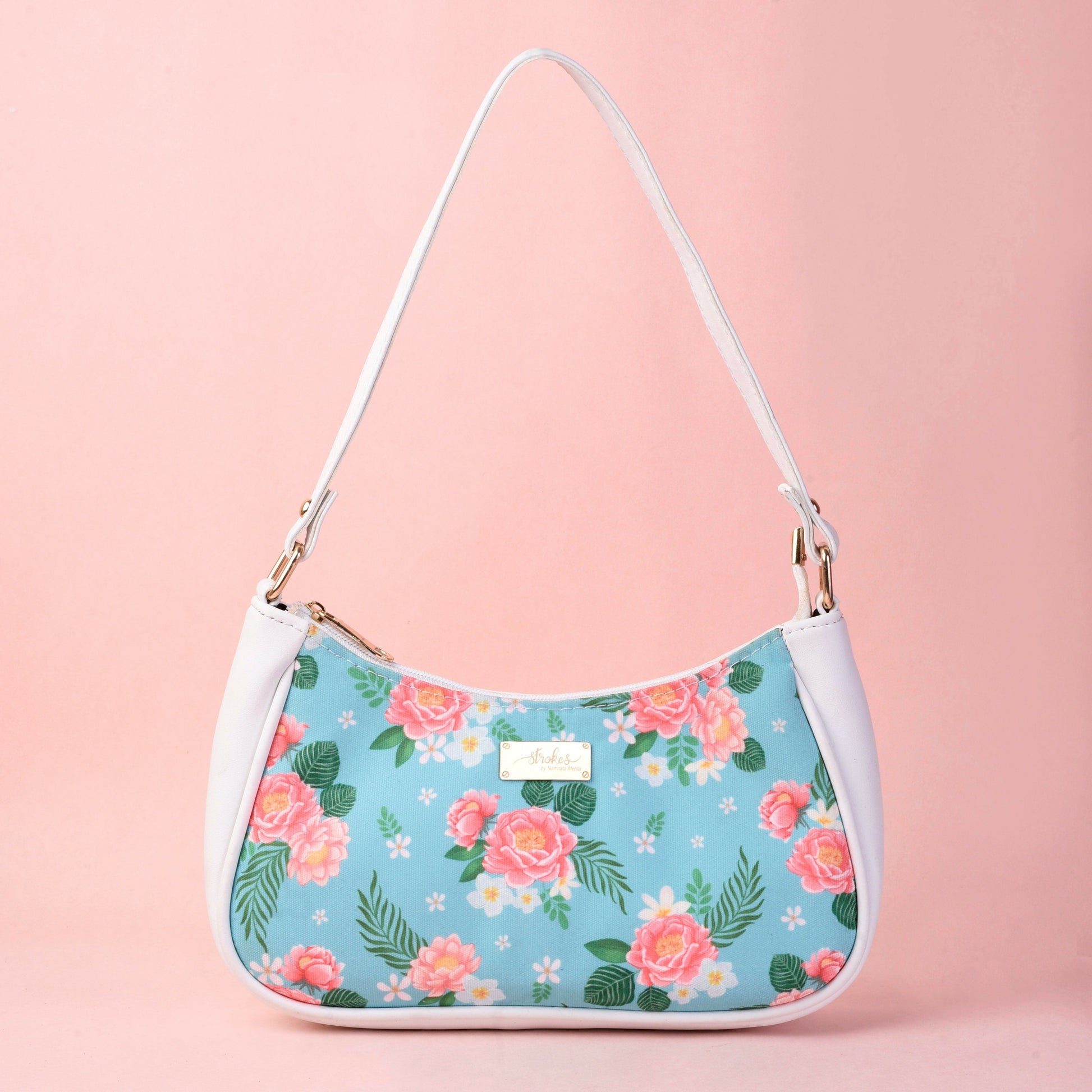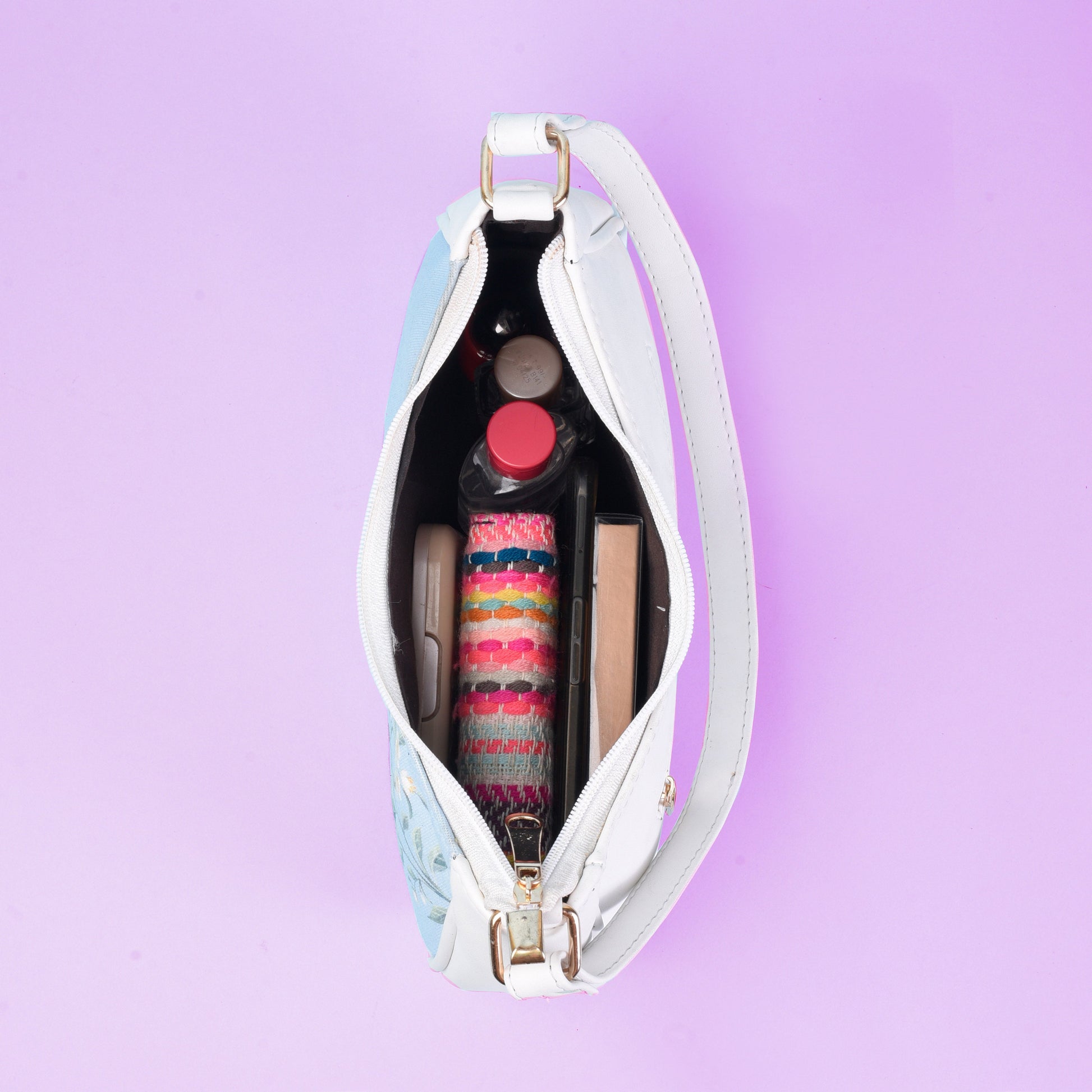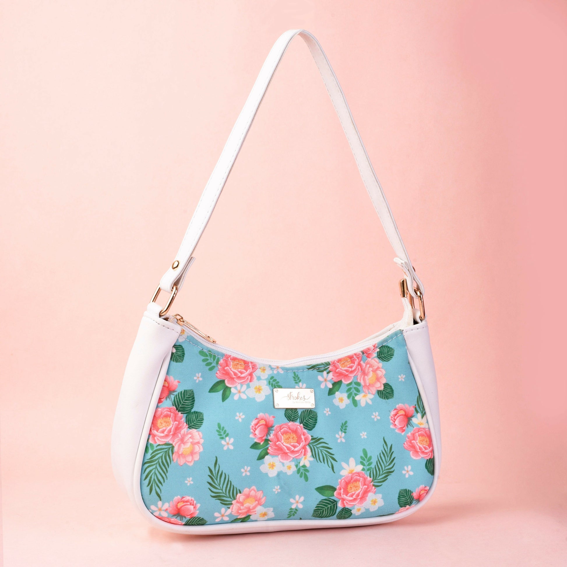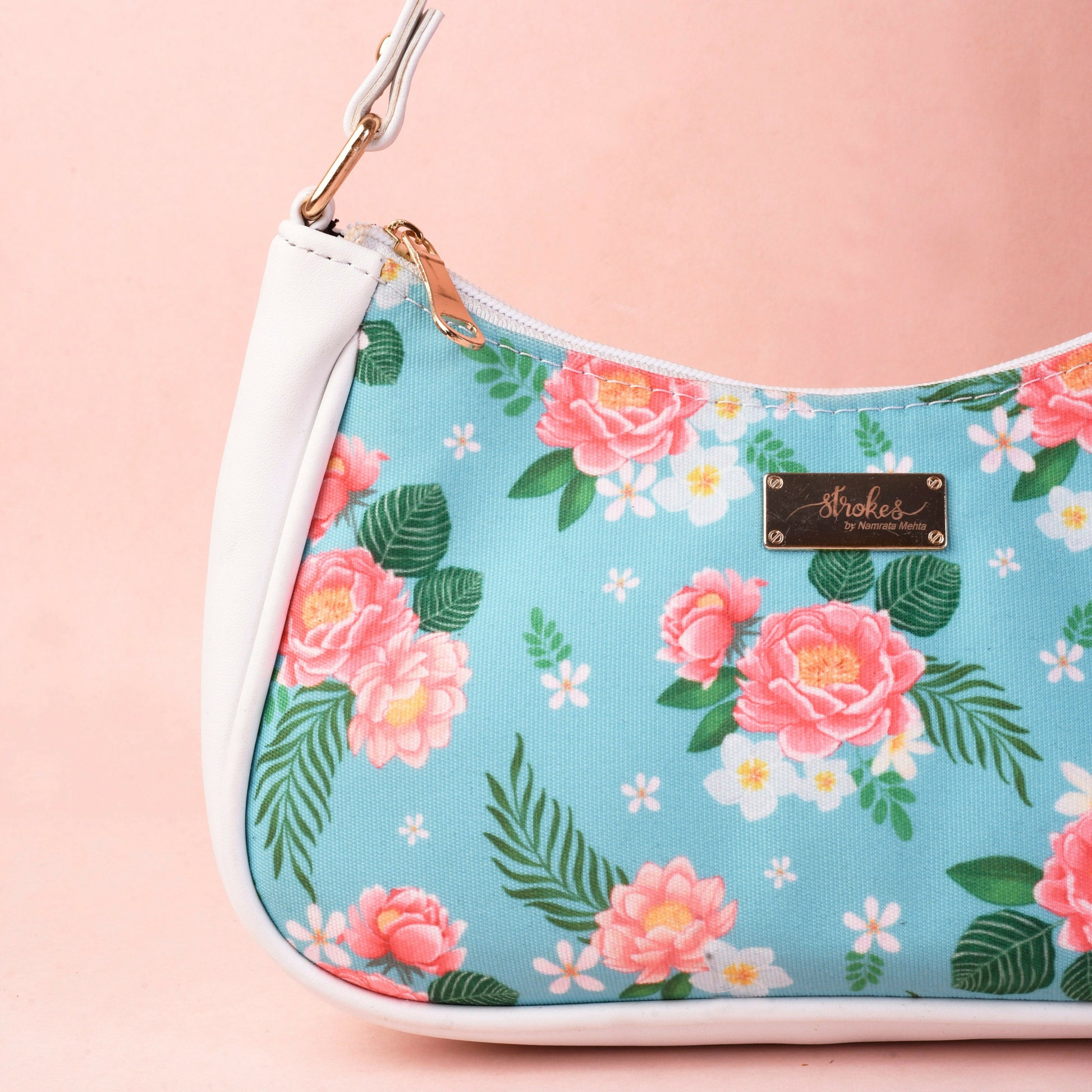 A beautiful illustration of delicate florals/leaves on a pastel blue background is perfect to elevate any look and also makes a great gift!
