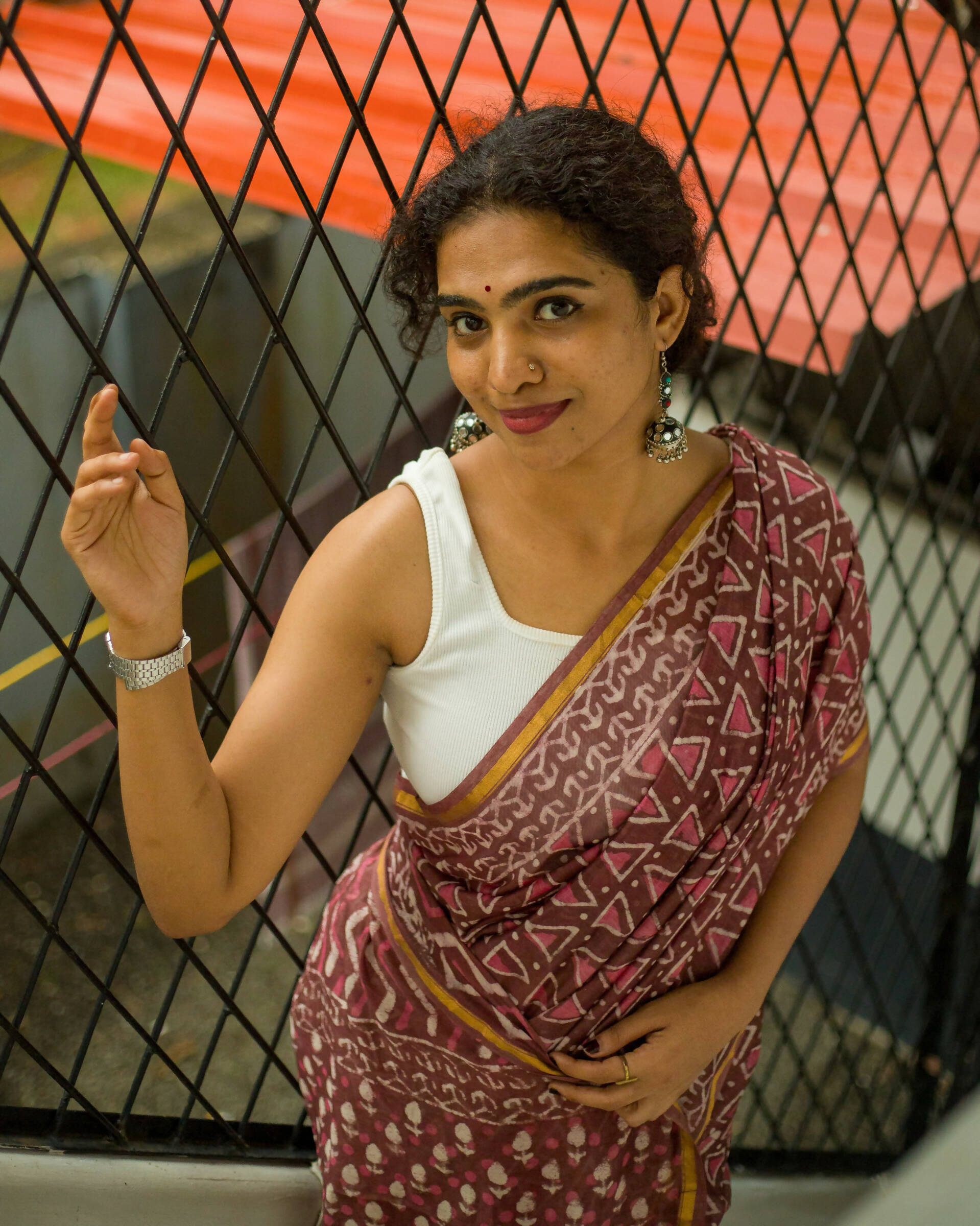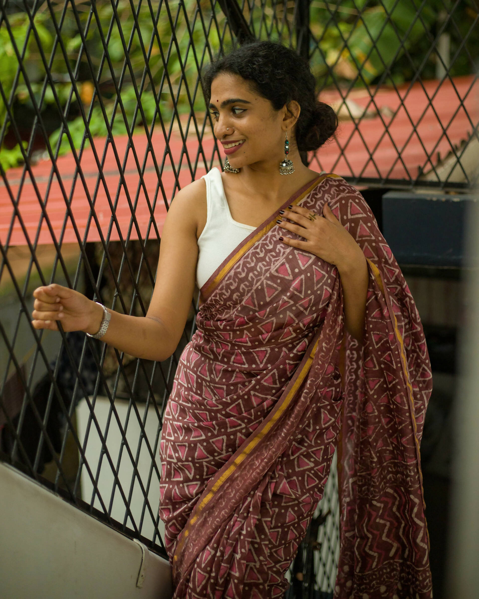 Pink Nostalgia - Hand Block Print Chanderi Silk Bagru Saree