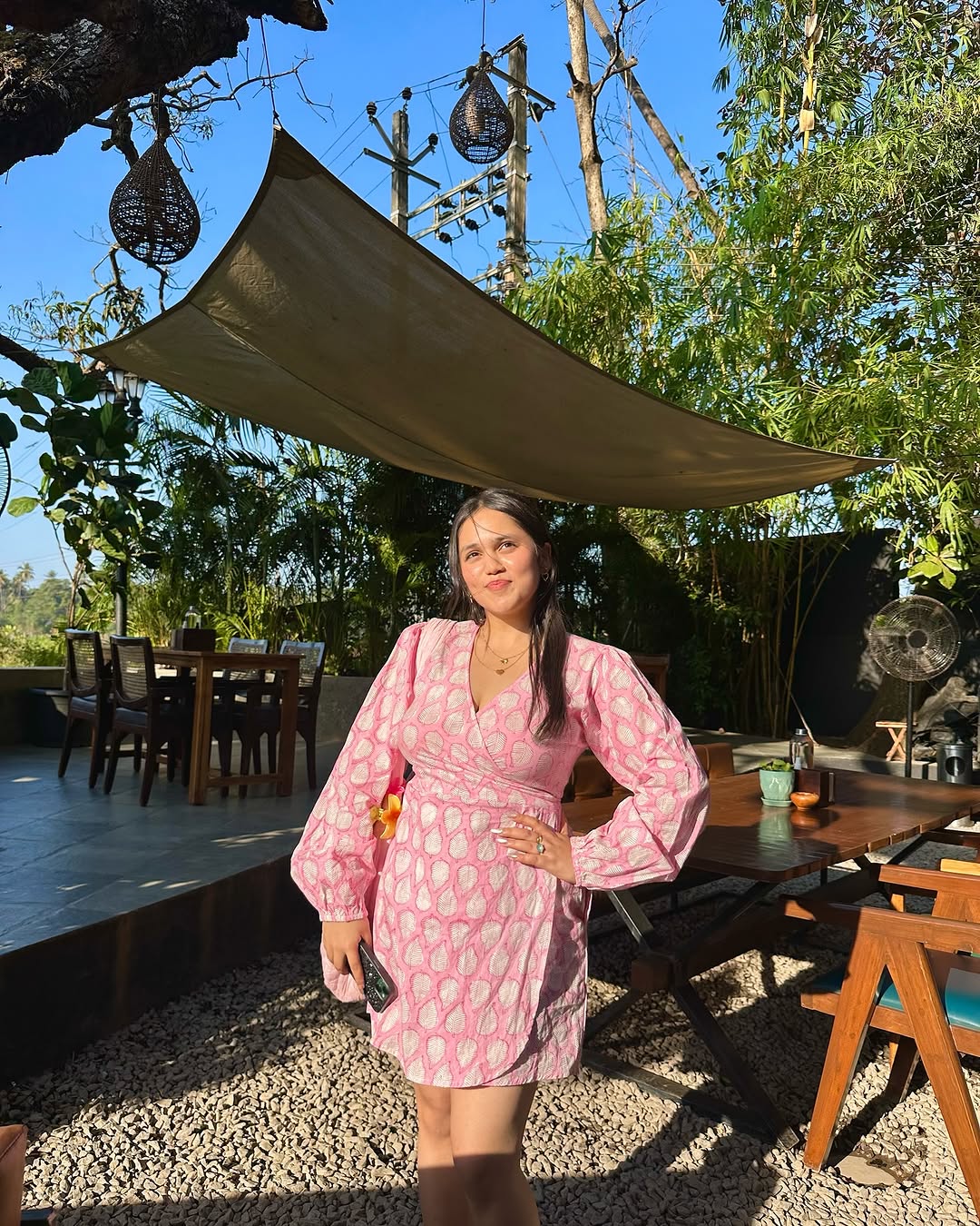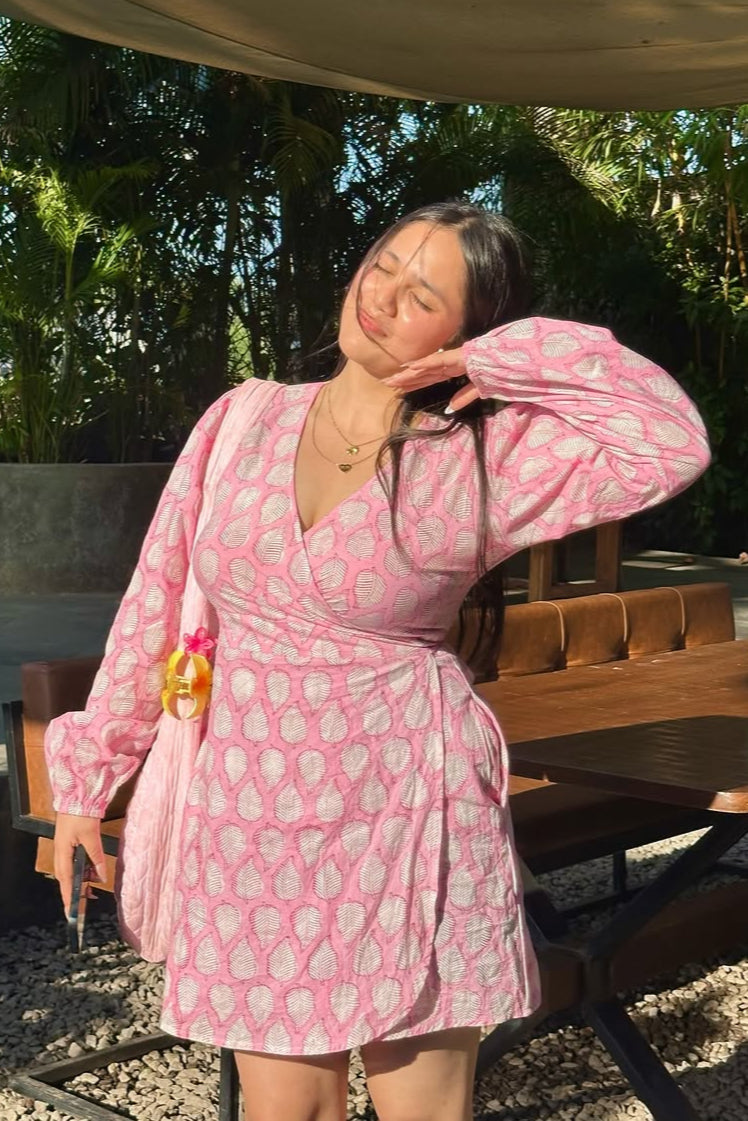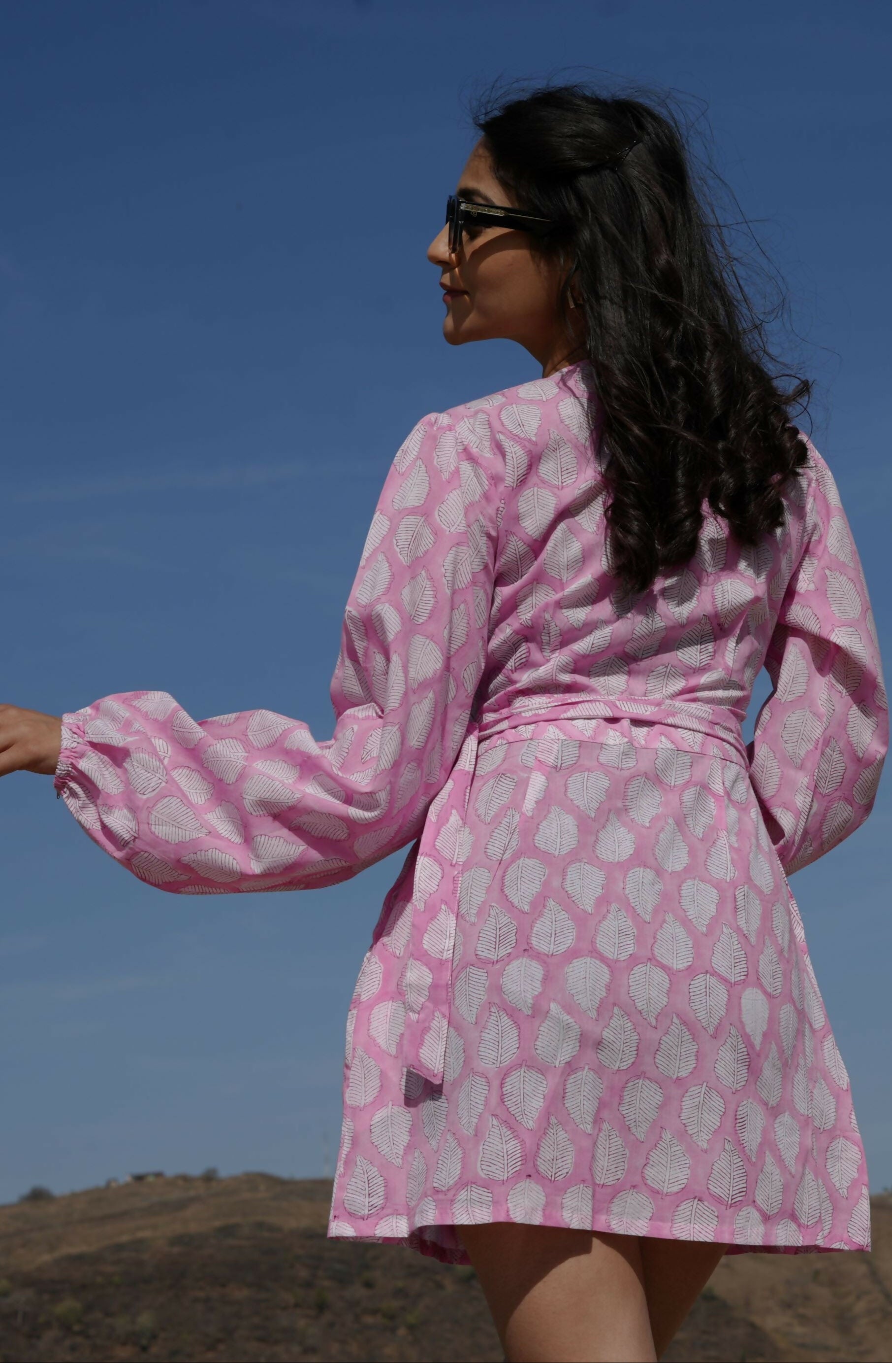 Upgrade Your Summer Style with the Wrap Around Dress Step into summer with confidence in our Wrap Around Dress, a must-have for your seasonal wardrobe. Crafted from 100% cotton hand block printed fabric, this dress seamlessly combines style with comfort, ensuring you look and feel your best all day long.
