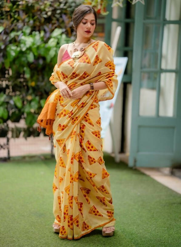 Pizza Party – Pizza Screen Print on Chanderi Saree