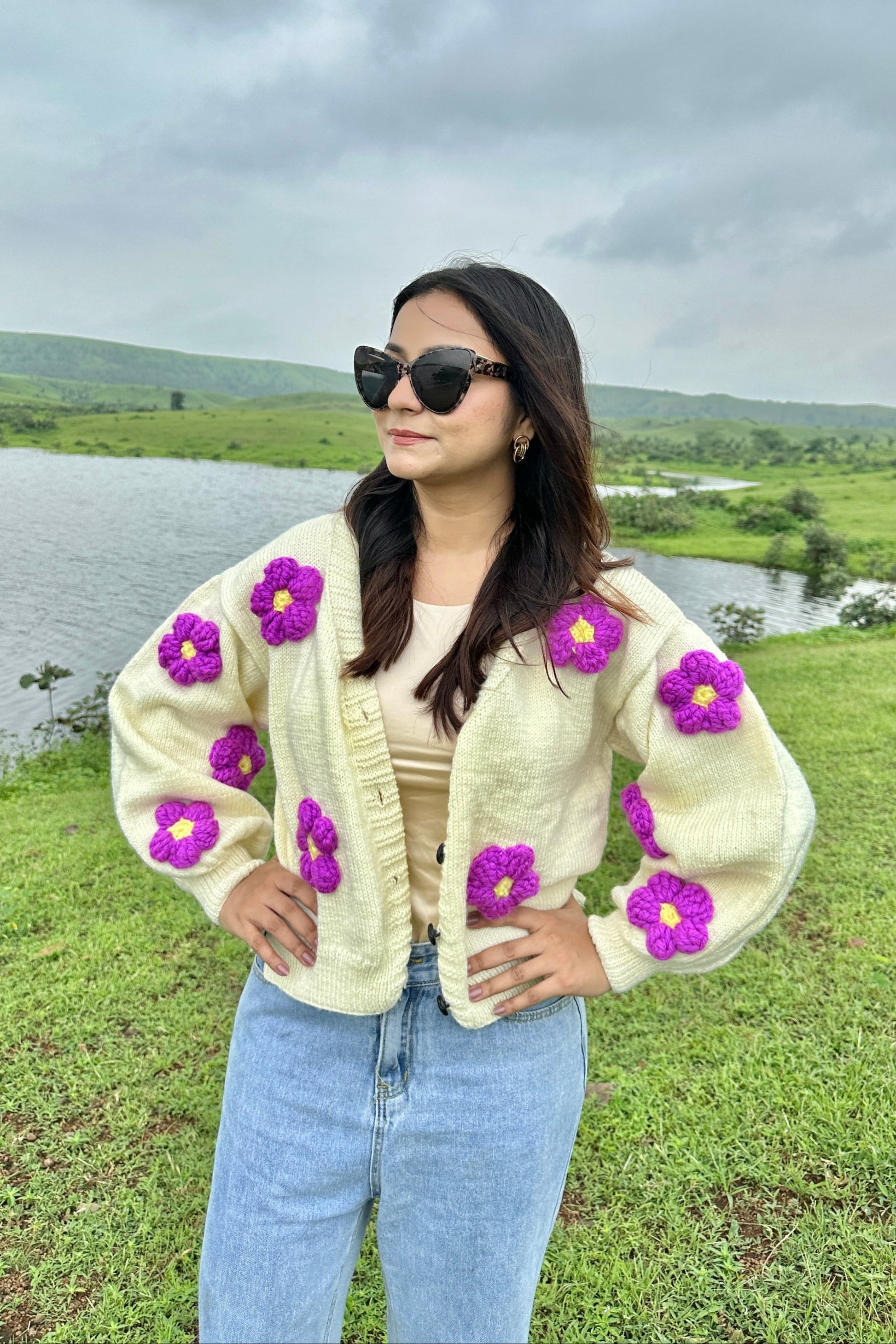 Brighten up your style with our Plum Hanging Daisy Cardigan! This charming cardigan features cute daisy designs that seem to "hang" across the fabric, adding a playful and cheerful vibe. The rich plum color gives it a unique look, making it stand out in your wardrobe. Made from soft, cozy fabric, it’s perfect for keeping you warm and stylish.
