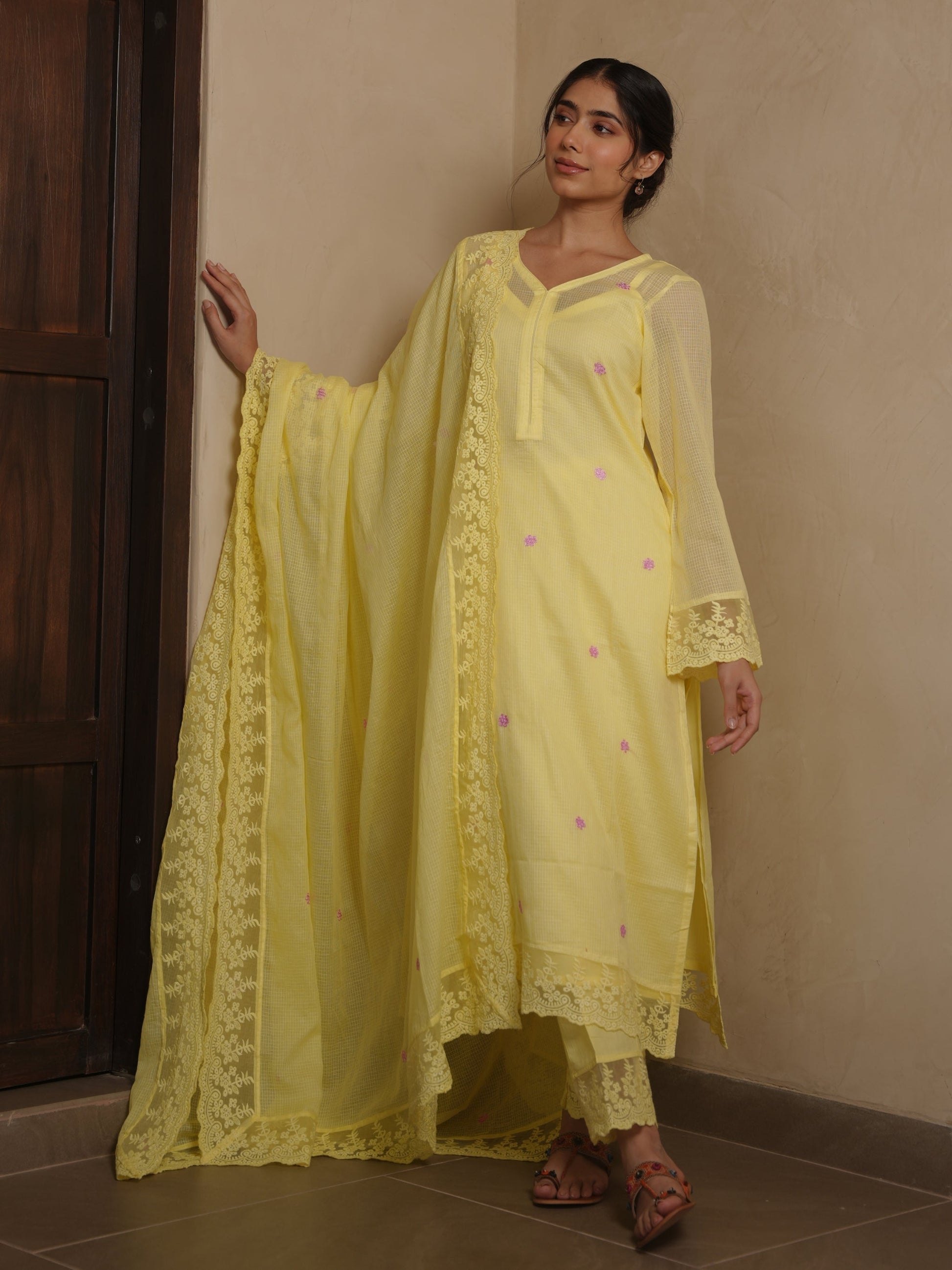Poppy Yellow Doriya Floral Embroidery Suit Set