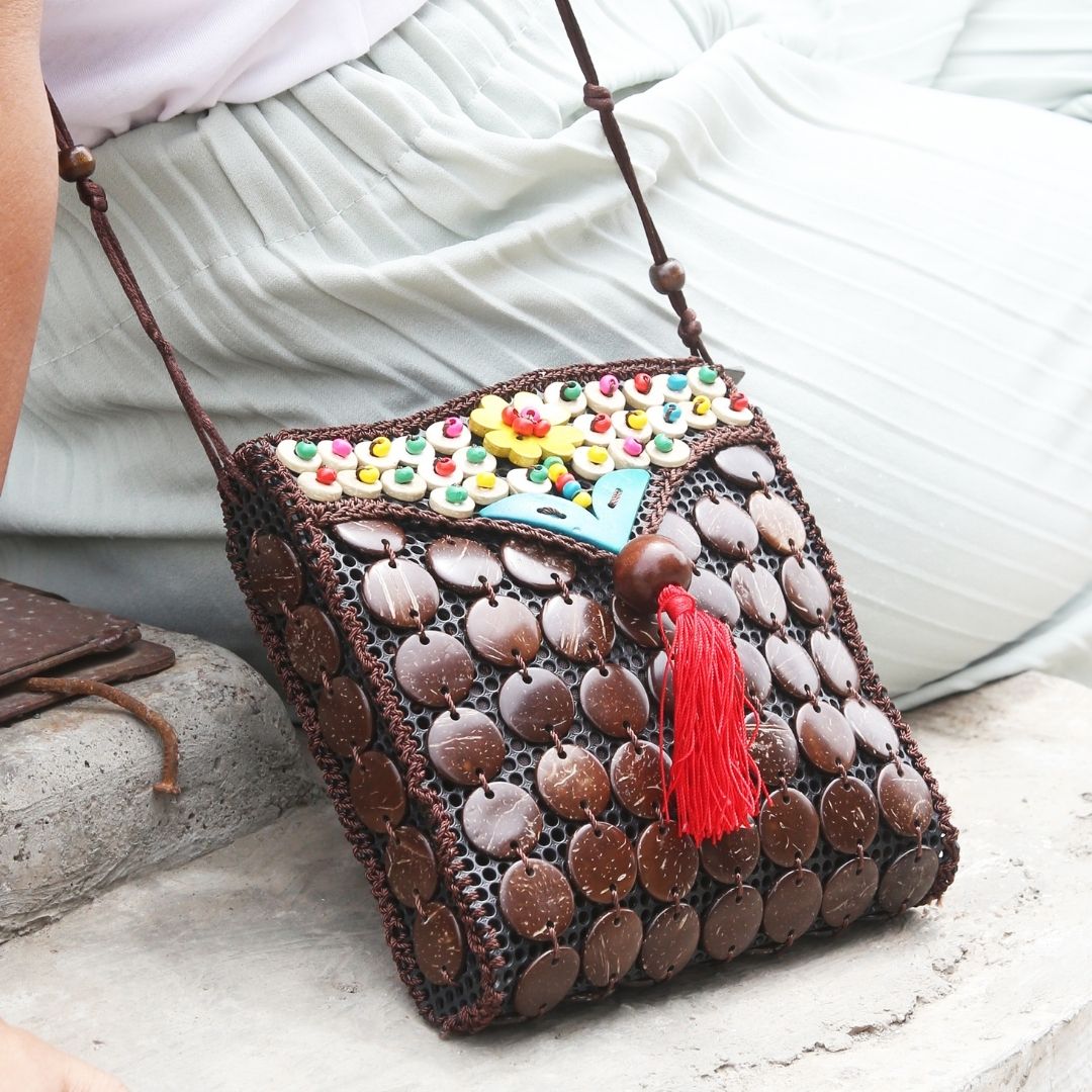 Natural fashion is fun with coconut bags. A beautiful accessory to add to your outfit. A unique, attractive gift to give and receive!