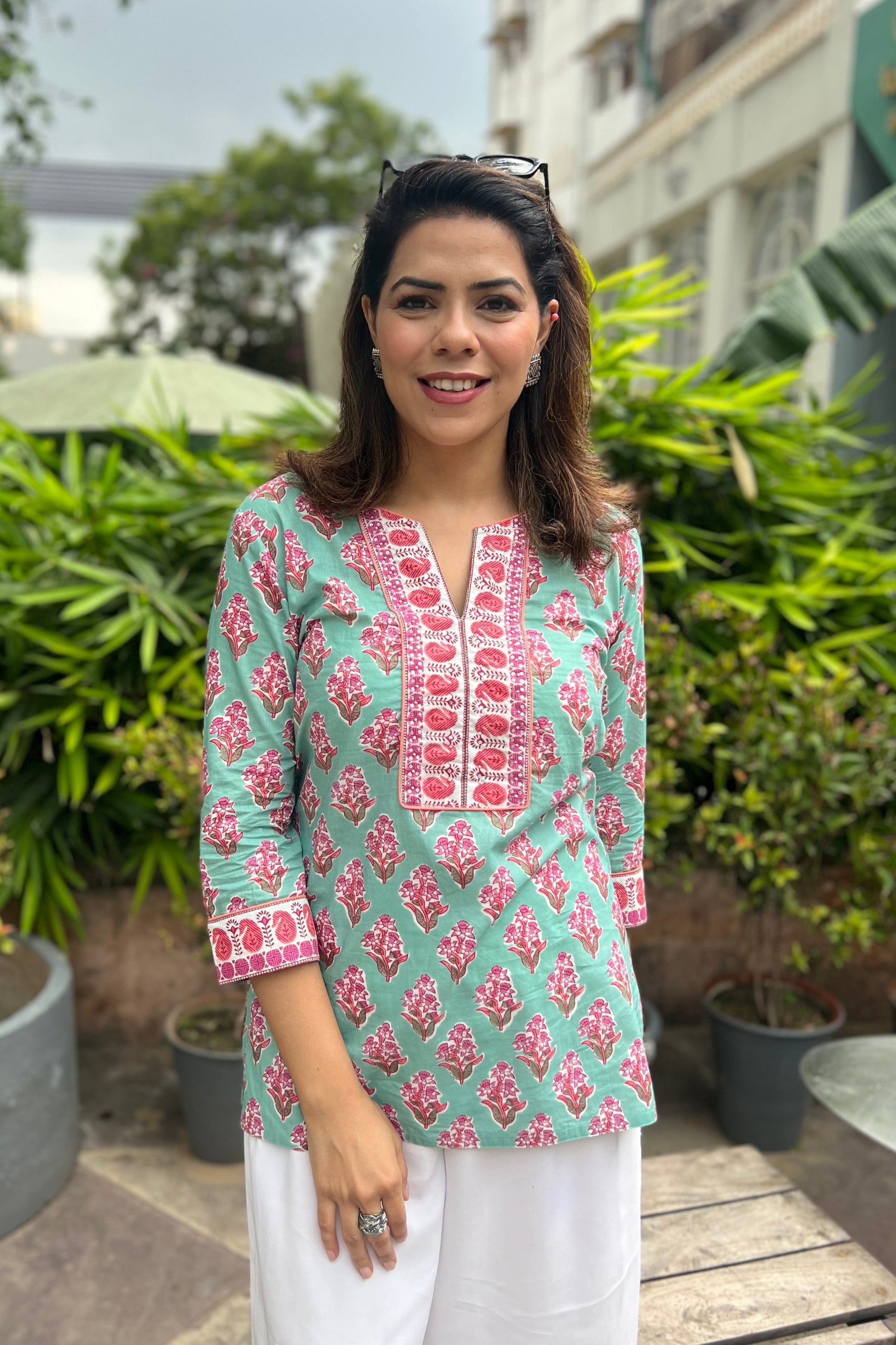 Printed Sequinned Pure Cotton Kurti