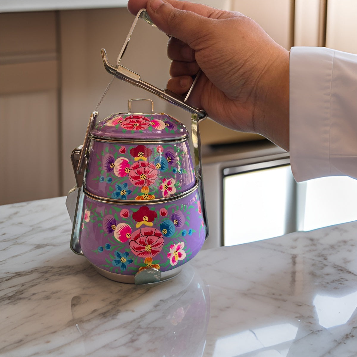 Purple hand painted 2 Tier Stainless Steel Tiffin