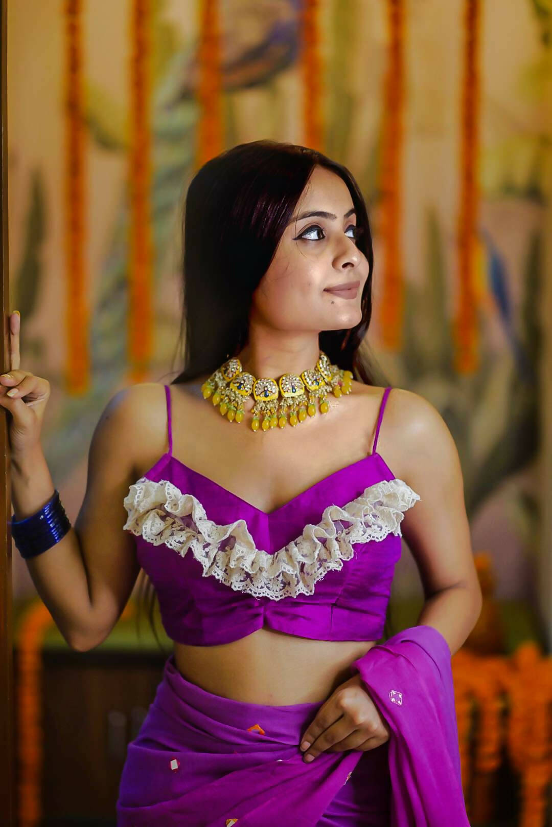 Elegantly designed to complement any saree, this blouse is a timeless fusion of tradition and style. Pair it with a monotone saree or go all over by pairing it with a contrast saree. This one will surely will be a statement piece in your wardrobe.