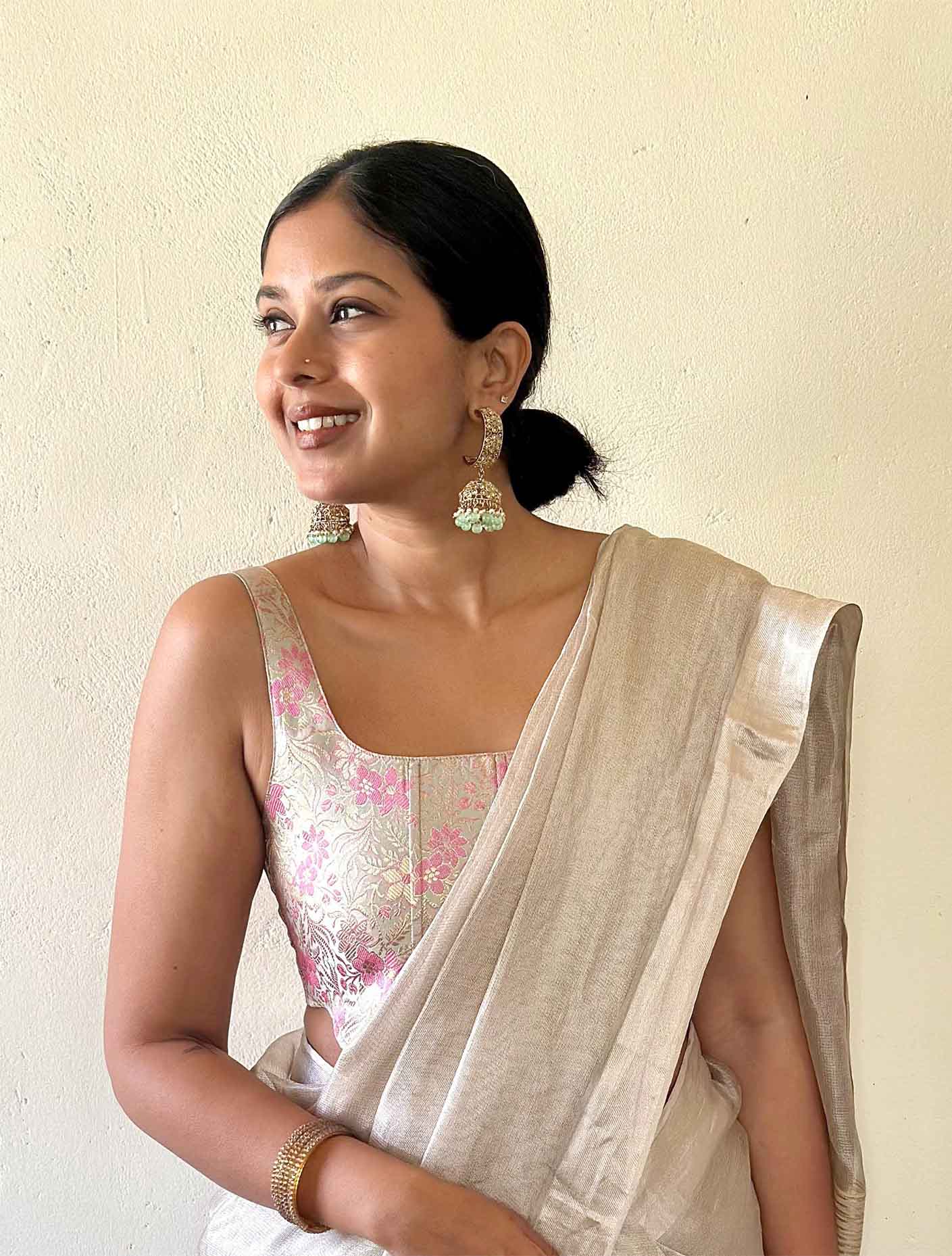 The Rani Banaras Silk Corset is a regal blend of tradition and modernity, crafted from luxurious Banarasi silk to exude opulence and grace. This corset is designed with a structured silhouette that beautifully highlight the waistline while ensuring a comfortable fit.