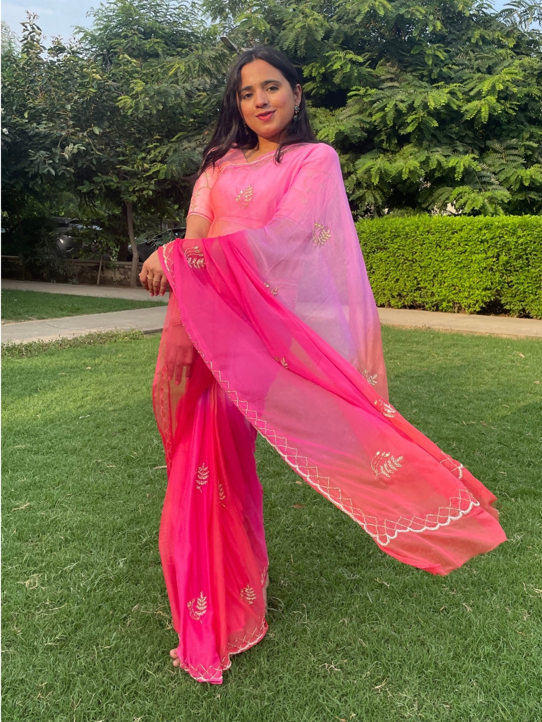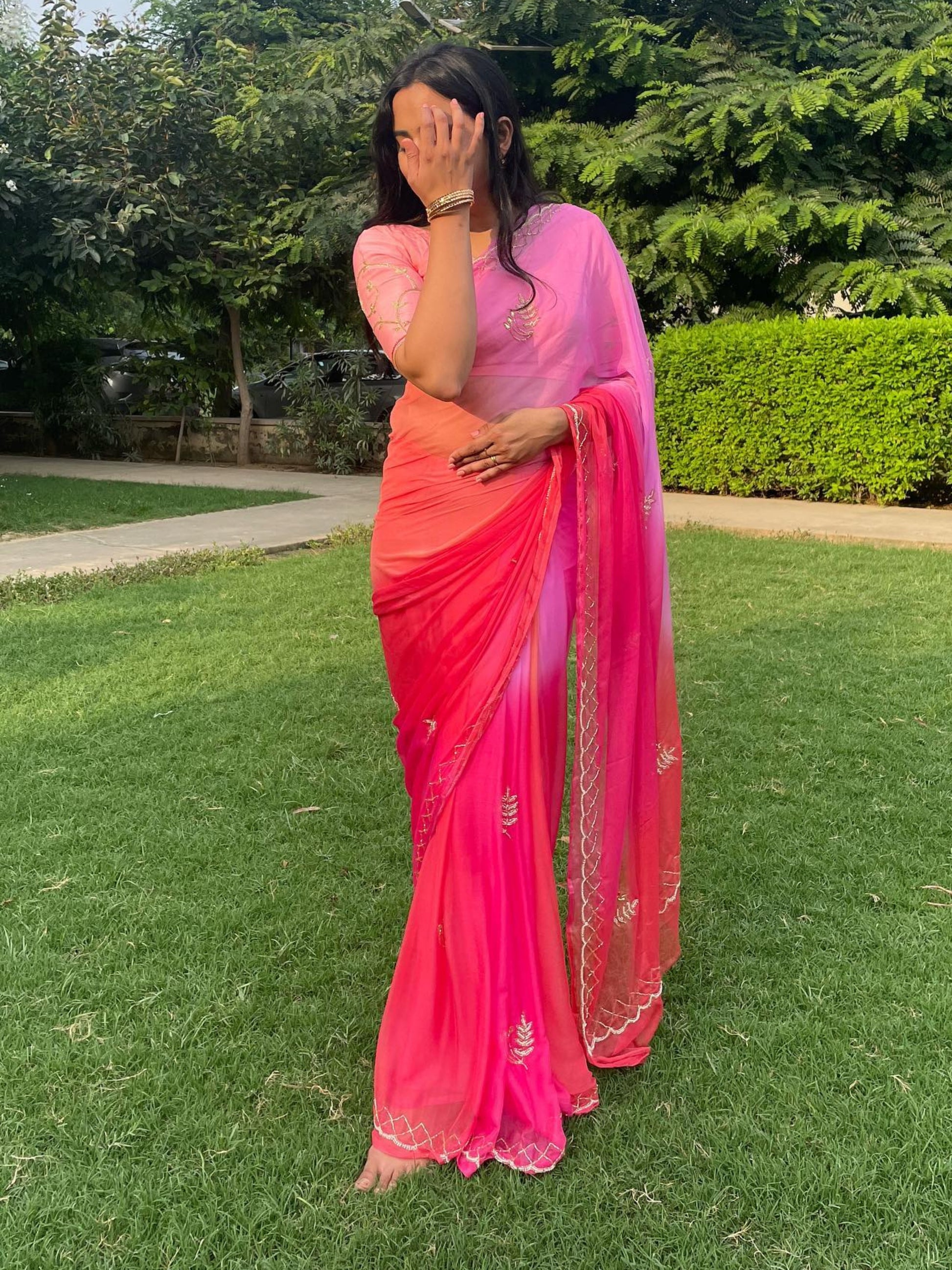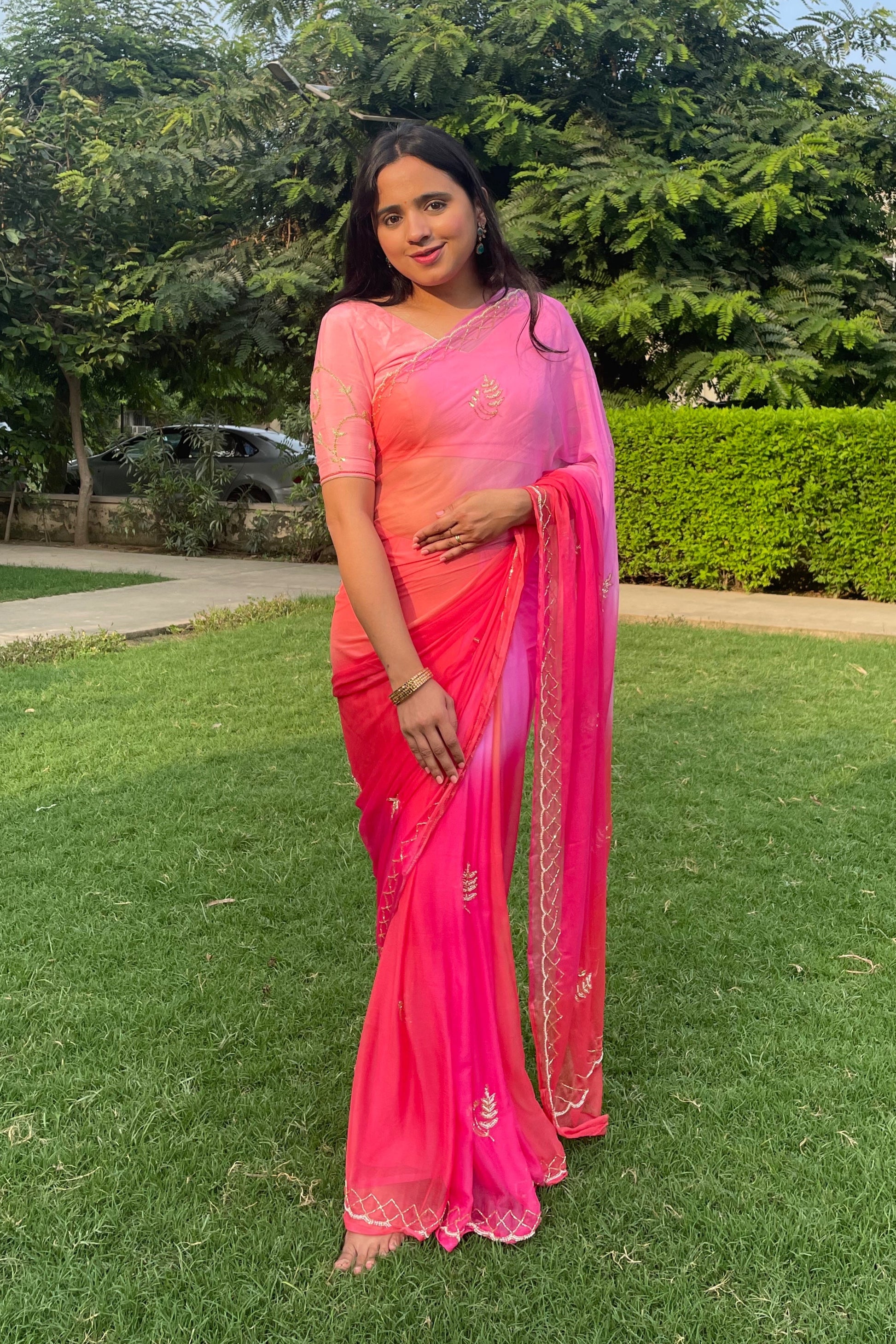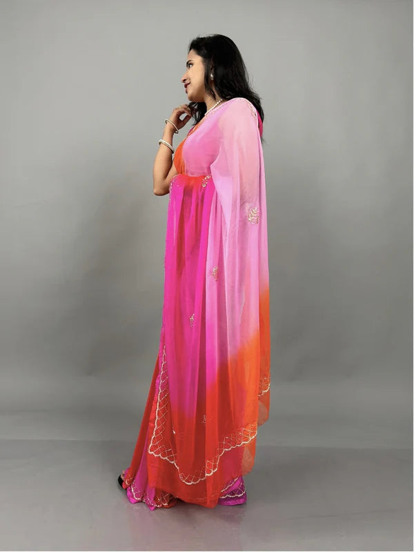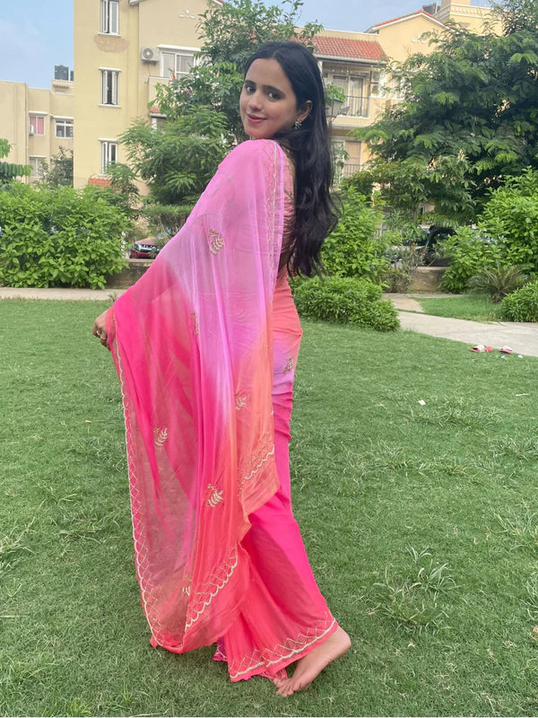 Rani Ombre Shades of Pink Pre Pleated Chiffon Saree