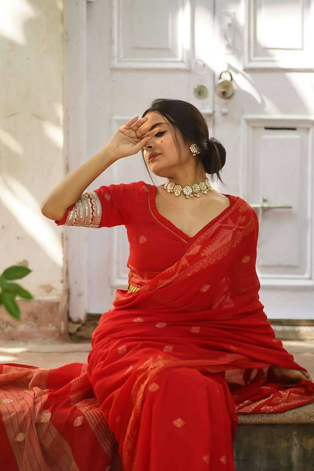 Elegantly designed to complement any saree, this blouse is a timeless fusion of tradition and style.