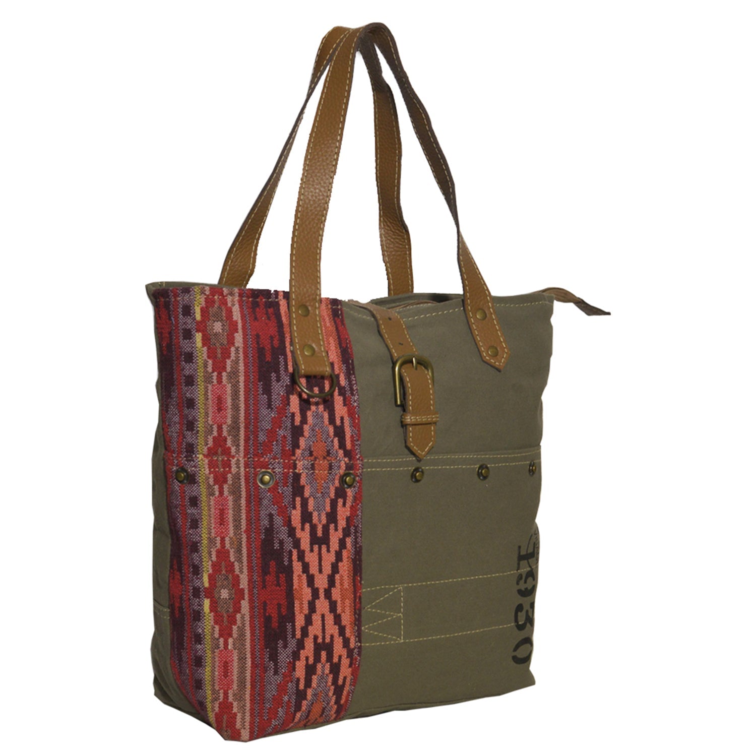 This is a Proudly Indian with a Stylish Aztec Pattern. It has sturdy and durable accessories, with a zip closure and double strap handle (non-adjustable). The bag contains a single compartment. Also it has a back zipper pocket for quick access.